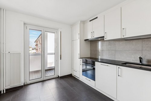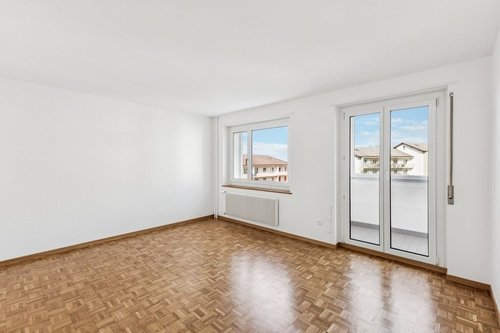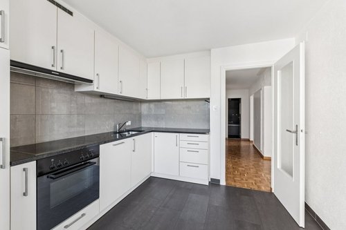 Appartement de 3 pièces avec ascenseur comprenant: – Cuisine agencée – Une salle de bain avec baignoire ainsi qu'un WC séparé – Chambres avec parquets – Un jardin d'hiver Situé dans un quartier calme, à proximité de l'arrêt du bus, de la patinoire, de la piscine et entouré de nature.