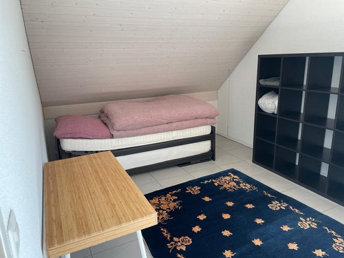 Das Zimmer ist in einer grossen 4.5-Zimmer Dachwohnung. Schöne Wohnlage am Waldrand. Zur Wohnung gehört eine eigene Waschküche. Es hat einen Lift direkt in die Wohnung. Ein Tiefgaragenplatz kann in der Nähe dazugemietet werden. Dein Zimmer ist 17 qm gross und hell. Es wird möbliert vermietet. Das Einzelbett kann auf ein Doppelbett erweitert werden. Das Badezimmer teilst du mit einem Wohnpartner. Küche, Balkon und Esszimmer nutzen wir gemeinsam. In der Miete sind alle Nebenkosten inbegriffen sowie eine Reinigungskraft, die alle zwei Wochen die Böden aufnimmt und die Badezimmer reinigt. Die Bushaltestelle Finken-Rain ist 5 Gehminuten vom Haus entfernt (Stadtbus 5 im 15-Min-Takt zum HB). Wir sind 3 berufstätige Mitbewohnende, die viel unterwegs sind, aber auch im Homeoffice arbeiten. Wir haben eine Zweck-WG ohne gemeinschaftliche Zwänge (keine regelmässig geplanten WG-Abende o.ä.). Bitte melde dich mit ein paar persönlichen Zeilen zu deiner Person und deinen Vorstellungen zum Zusammenwohnen.