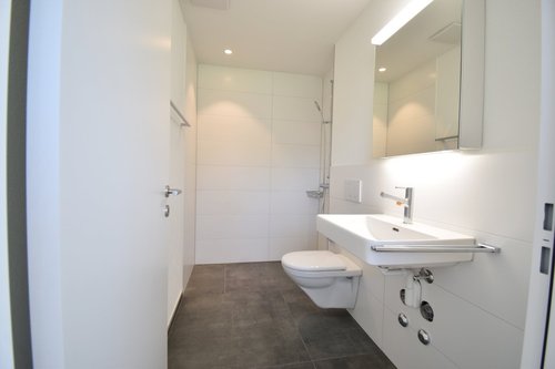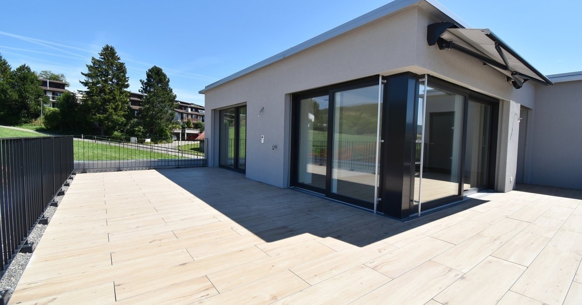 In einem gepflegten Mehrfamilienhaus (Neubau 2019 mit 8 Wohneinheiten) an ruhiger, sonniger Lage und in ländlicher Umgebung erwartet Sie eine helle, moderne 2.5-Zimmer-Attikawohnung mit grosszügiger Terrasse. Die öffentlichen Verkehrsmittel und Einkaufsmöglichkeiten sind in wenigen Gehminuten erreichbar. Ideal für Single oder Paare. – Wohn-/Schlafzimmer/Essbereich mit Keramikplatten in Parkettoptik – Küche mit modernsten Geräten – Dusche/WC mit Plattenboden – Eigene Waschmaschine/Tumbler und Waschbecken in separatem Kellerabteil UG – Sonnige Terrasse (ca. 57.80m2) Einstellplatz à CHF 135.00/mtl. kann dazu gemietet werden. Die Bilder zeigen möglicherweise nicht genau diese Wohnung, der Ausstattungsstandard ist jedoch gleich. Haben wir Ihr Interesse geweckt? Ein Besichtigung lohnt sich auf jeden Fall!