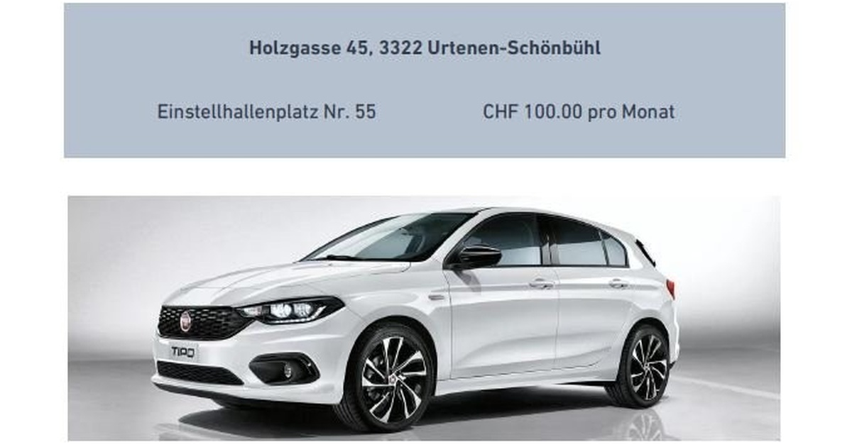 Ab sofort oder nach Vereinbarung vermieten wir einen freistehenden Einstellhallenplatz für CHF 100.00. Für externe Mieter, die nicht in der Liegenschaft wohnen, kommt die MwSt. von 8,1% hinzu. Wir freuen uns auf Ihre Kontaktaufnahme unter 031 340 55 33 oder noa.savinelli@niederer.com.