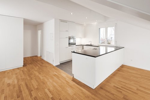 Nach Vereinbarung vermieten wir diese moderne 3.5-Zimmer- Dachwohnung. Diese befindet sich in Jegenstorf und bietet folgenden Ausbaustandart • moderne, offene Küche mit Geschirrspüler, obenliegendem Backofen und BORA-Dampfabzugssystem • grosszügiges, offenes Wohnzimmer mit direktem Zugang auf den halb überdeckten Balkon • modernes Bad mit Badewanne und Fenster • eigener Waschturm direkt in der Wohnung • Gästetoilette • edler Riemen-Parkettboden in den Wohnräumen und elegante, dunkle Bodenplatten in Bad und Küche • durch die hohen Fenster im Wohnzimmer fällt viel Licht in die Wohnung • praktischer Stauraum in den Dachschrägen