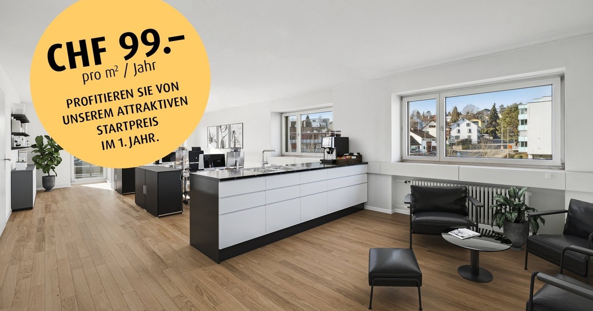 Konditionen: Kontaktieren Sie uns gerne für Angaben zu den Konditionen. • Der Nettomietzins von CHF 99 pro m²/Jahr (zzgl. NK) im ersten Jahr basiert auf einer 5-jährigen Vertragsdauer und versteht sich als Startpreis einer Rabattierung. • Auch nach Ablauf der Rabattierung im ersten Jahr können wir Ihnen weiterhin attraktive Mietzinse anbieten; je nach Mietdauer, Ausbau & Fläche die Sie wünschen.
