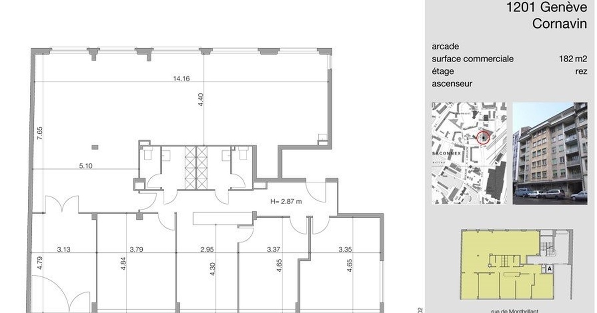Cette belle surface commerciale de 182 m2 au rez-de-chaussée dispose de plusieurs bureaux, deux WC et un grand espace qui donne sur l'arrière du bâtiment.