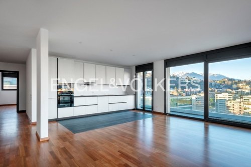 Diese moderne und geräumige 4,5-Zimmer-Wohnung bietet einen atemberaubenden Blick auf den ruhigen See aus dem 7. Stock in der schönen Nachbarschaft von Paradiso. Die Wohnung mit 138 m2 verfügt über ein modernes Design mit eleganten Oberflächen und viel natürliches Licht, die einen einladenden und komfortablen Wohnbereich schaffen. Wenn Sie die Wohnung betreten, werden Sie von einem stilvollen und hellen Wohnzimmer empfangen, das sich zu einem Balkon mit 40 m2 mit Blick auf den malerischen See öffnet. Dieser Aussenbereich eignet sich perfekt zum Entspannen, um Gäste zu unterhalten oder einfach nur die atemberaubende Landschaft zu geniessen. Die Wohnung bietet 4,5 Zimmer, die je nach Bedarf als Schlafzimmer, Arbeitszimmer oder andere funktionale Räume genutzt werden können. Das Wohnung wird derzeit als Büro genutzt, kann aber in ein Wohnapartment umgewandelt werden. Verfu?gbar ab Mitte Februar 2026 Paradiso erstreckt sich in unmittelbarer Nähe der Ufer des Luganersees und befindet sich nur zwei Kilometer vom Stadtzentrum Luganos entfernt. Dieses kann, durch einen wunderbaren Spaziergang unter dem schattigen Laub der Bäume entlang des Seeufers, erreicht werden. In unmittelbarer Nähe befinden sich Supermärkte, sowie öffentliche Verkehrsmittel. Die Standseilbahn auf den Monte San Salvatore ist ebenfalls nur einen Steinwurf entfernt, wie auch Hotels, Restaurants & Cafes. Seit 2015 bietet das neue Kunst- und Kulturzentrum Lugano Arte e Cultura (LAC) diverse Ausstellung in den Bereichen der visuellen, musikalischen und darstellenden Kunst. Gerne sind wir Ihnen auch bei der Ansiedlung ins Tessin behilflich und beraten Sie umfassend. Herzlich willkommen in Paradiso!