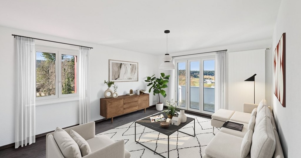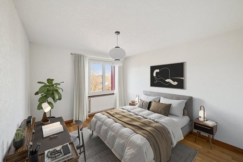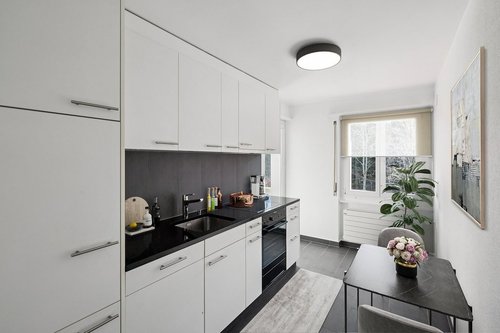 Bel appartement lumineux de 4 pièces offrant un cadre de vie agréable et fonctionnel: • Cuisine agencée avec accès direct à un petit balcon. • Salle de bain avec douche. • Séjour spacieux avec accès au balcon. • Trois chambres confortables avec parquet.