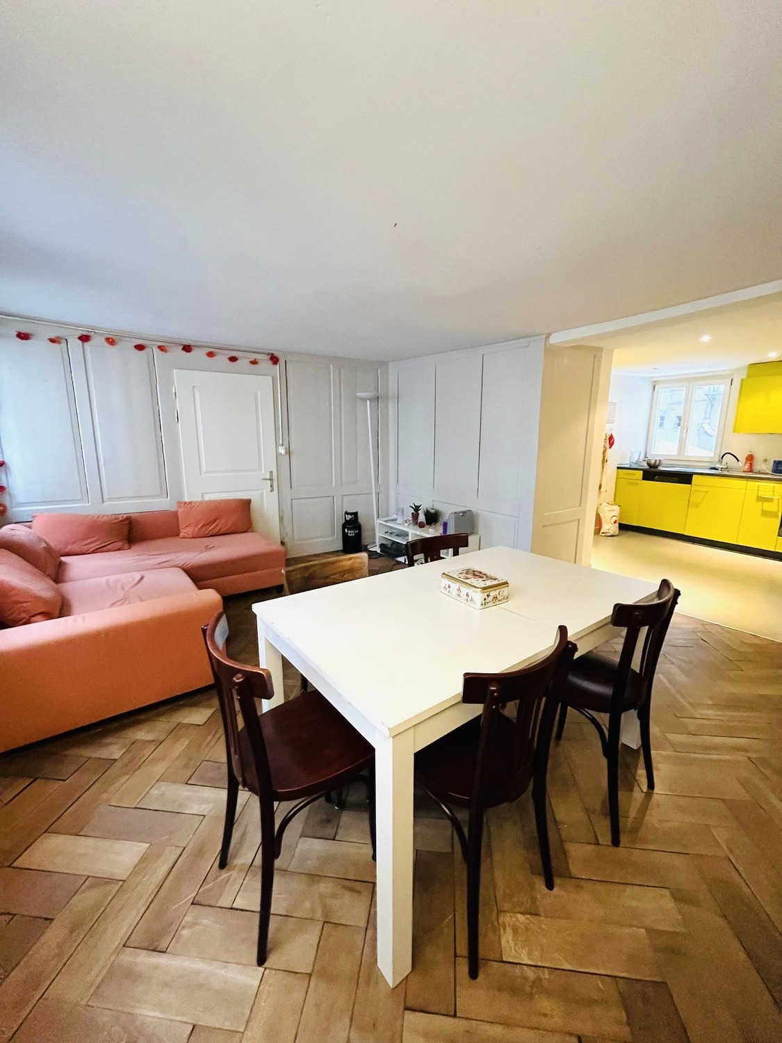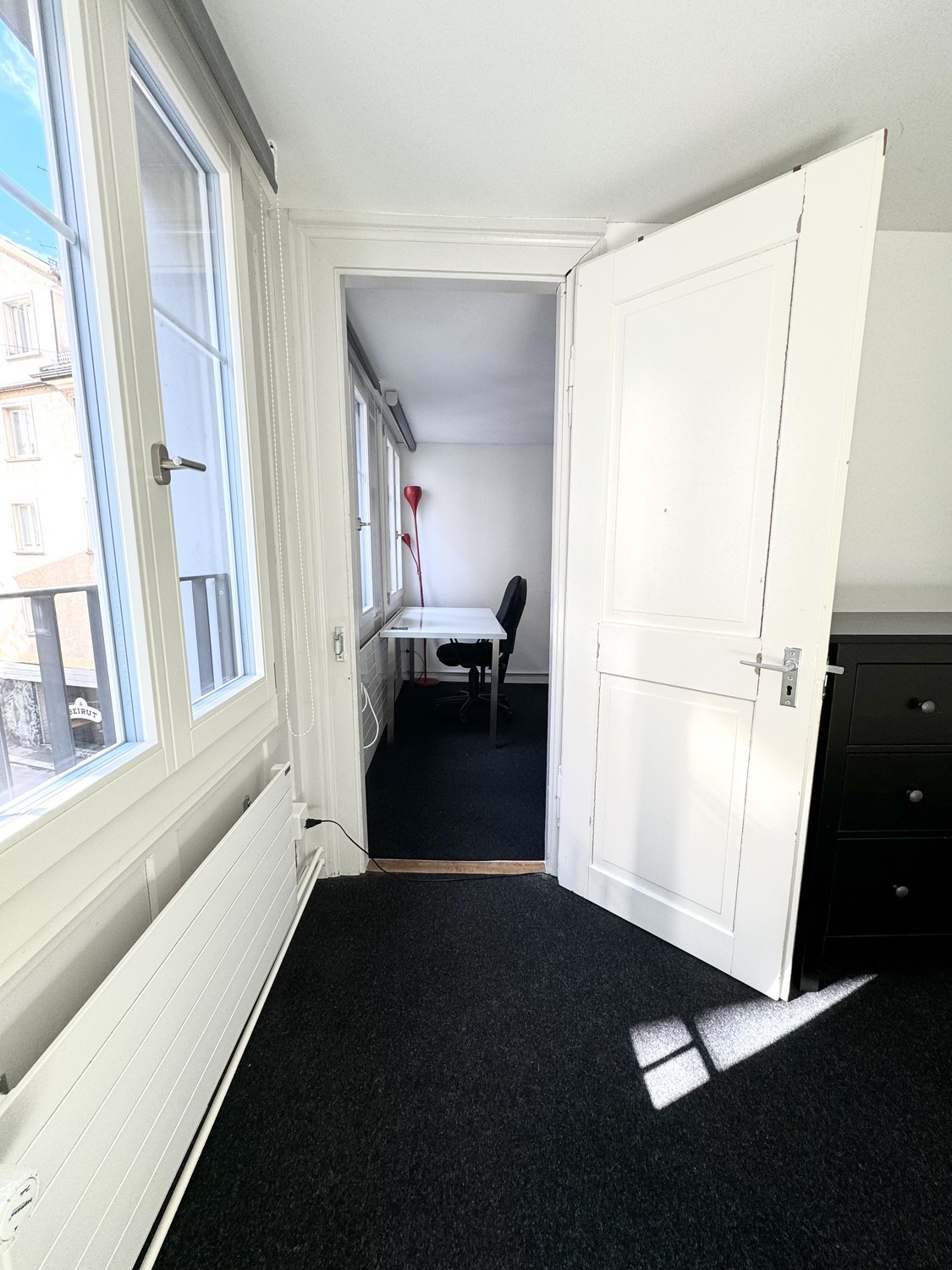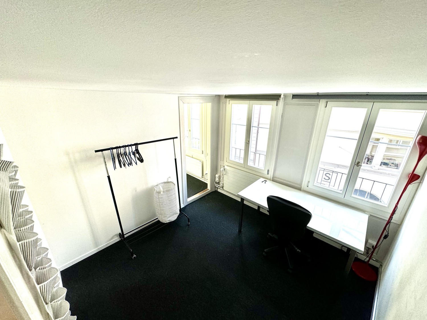 Nice and attractive double room (2 separate rooms - office and bedroom - but connected) in a spacious shared apartment over 3 floors in the center of St. Gallen's old town. Newly renovated and fully furnished. Includes all rooms and kitchen. 6 young people (mainly students) share 9 rooms, two baths and one extra toilet. Large private terrace. Private laundry room. Spacious kitchen/living room. All costs (heating, electricity, high-speed internet, water, TV fees) included. Minimum stay: a) only during the summer of 2026 from June to the end of August) or b) from June or by arrangement, minimum until the end of January 2027.