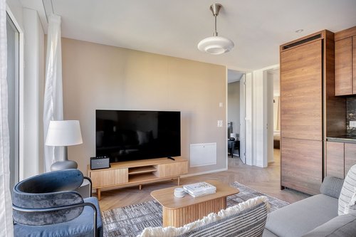 Wie bei jedem Blueground Wohnung finden Sie einen durchdacht gestalteten Raum mit schönen Möbeln. und eine voll ausgestattete Küche in diesem Zwei-Schlafzimmern Immobilie. Und dank unserer hochwertigen Matratzen können Sie sich entspannen, weil Sie sich immer wie zu Hause fühlen werden. Wenn Sie Lust auf etwas Spaß haben, können Sie die Zurich -Atmosphäre genießen oder sich die Unterhaltung mit dem kabellosen Premium-Lautsprecher oder dem Smart-TV direkt nach Hause holen. Diese Wohnung bietet auch Wäscherei in der Wohnung.