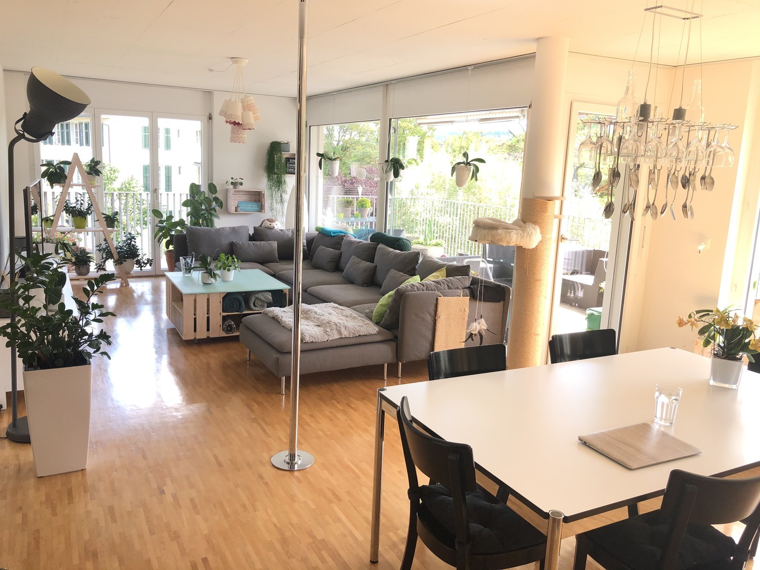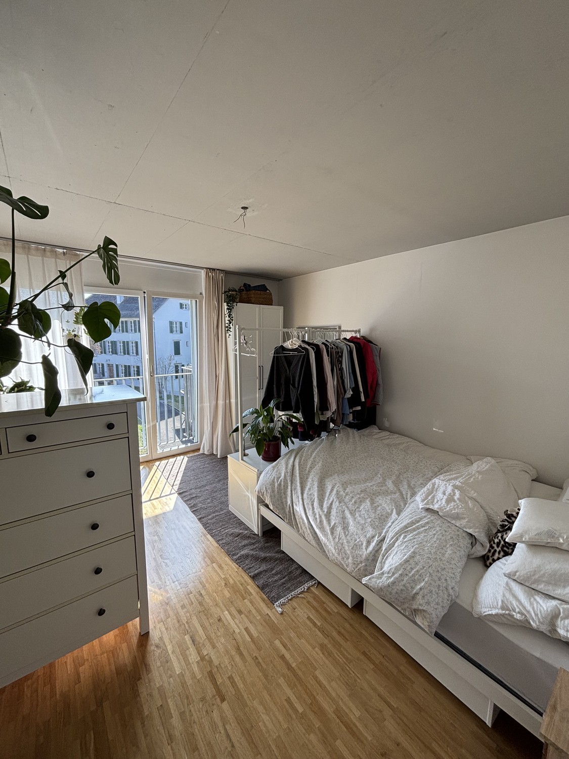 • Mietpreis: 901.- (exkl. Stromkosten) • Wohnung/ Zimmer: Ein 14.5m2 -Zimmer in einer 4.5-Zimmerwohnung zu vergeben • Beziehbar: ab April/Mai/Juni 2026 • Adresse: Emil-Klöti-Strasse 35, 8406 Winterthur • Ausstattung: Wohnräume mit Parkettböden, offene Küche mit Glaskeramikherd und Geschirrspülmaschine, Bad/WC (an ein Zimmer angeschlossen) und Dusche/WC (wird zu zweit genutzt), grosser Balkon, Keller mit eigener Waschmaschine/Tumbler, Lift Die 3er-WG befindet sich an der Emil-Klöti-Str. 35 in Winterthur Töss im 2. und zugleich obersten Stock eines Mehrfamilienhauses (Baujahr ca. 2007). Die Wohnung ist zur Südseite ausgerichtet, das heisst Morgensonne in den Zimmern und Tages-/ Abendsonne im Wohnzimmer (auf dem Balkon kann man den ganzen Tag die Sonne geniessen). Ein kurzer Fussweg von 1 Minute für einen Abstecher in die Töss – optimal für eine kleine Abkühlung im Sommer. Einkaufsmöglichkeiten, wie auch die 24h-Tankstelle befinden sich in der Nähe (500m zum Migros, Denner, oder auch Aldi). Die Autobahnauffahrt Töss ist ca. 800m entfernt. Der 7ner Bus braucht 7 Minuten bis zum Hauptbahnhof, mit dem Velo geht’s fast so schnell. Die Wohnung ist mit allem ausgestattet was man so braucht (und noch mehr). In den Mietkosten von 901.- CHF enthalten sind: Mietzins für das 14.5m2 grosse Zimmer sowie alle Wohnräume inkl. Keller zur Mitbenützung, TV-/ Internetgebühren und SERAFE, Recyclingheld Mr. Green (1x/Monat) und Nebenkosten. Exklusive Stromkosten (erfahrungsgemäss ca. 30.-/Monat). Tiefgaragenparkplätze können für 125CHF/Monat dazu gemietet werden. Schreib doch gern ein paar Zeilen zu dir, wer du bist und weshalb du gerne bei uns einziehen würdest. :) Wir suchen eine aufgestellte, zuverlässige Person, die in die WG passt. Vorzugsweise jemanden, der/ die bereits WG-Erfahrung oder schon mal allein gewohnt hat (und weiss, was es in einem Haushalt alles so zu erledigen gibt und dabei mitanpacken kann, also nicht wie im Hotel-Mama ;P ). Wir sind Sara (32, Doktorandin Ergotherapie) und Fiona (27, Studentin). Bevor wir hier unsere WG in einem ewigen Roman promoten, einfach das Wichtigste in Kürze: Wir sind keine reine „Zwecks-WG“, wir pflegen ein gemütliches Zusammenwohnen und legen Wert auf ein ordentliches und gepflegtes Zuhause. Ausserdem teilen wir unser Zuhause mit zwei Schmusekatern (Achtung nackig^^). Good to know: geraucht wird auch bei eisiger Kälte nur auf dem Balkon. Ansonsten, komm vorbei und lerne uns kennen.