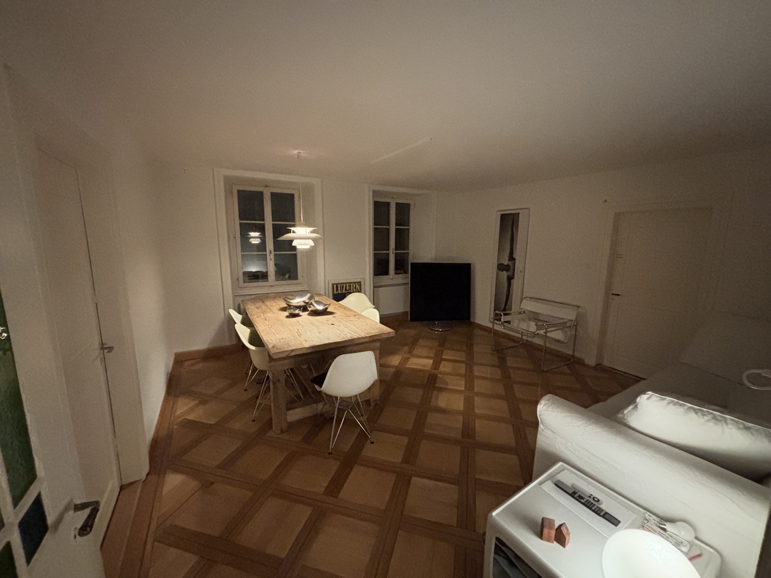 In der Nähe • Direkt neben Paranoia, Fizzen, Alibaba (Shops) • Next Bike: 2 min • Uni/HSLU: 7 min zu Fuss • BHF LU: 6 min zu Fuss • Busstation: Schwanenplatz, 2 min zu Fuss • CoopCity: 1 min zu Fuss • Mill'Feuille, Jazzkantine etc. (Bars): 1-2 min zu Fuss Das Zimmer ist • 16 qm gross • Möbliertes Zimmer mit Schreibtisch, Bett (inkl. Matratze, falls gewünscht), Nachttisch, Kleiderregal, Stuhl • Fischgrätparkett • Dimmbares Zimmerlicht • Miete: CHF 950 inkl. NK und Möblierung Zur Wohnung (3er WG): • voll ausgestattete und riesige Küche • echte Designer-Möbel zur Mitbenutzung • Netflix und Apple TV inklusive • Geschirrspüler • grosses Wohnzimmer • Balkon/Graben/Aussenbereich • Waschküche mit Trocknungsraum, direkter Zugang aus der Wohnung • Hervorragender und zentraler Standort • Ruhige Lage • 2x Mitbewohner Mehr Bilder auf Nachfrage oder bei Besichtigung. Wir suchen • aufgestellte Mitbewohnerin • Ordnung und Sauberkeit • Alter zwischen 18-30 bevorzugt Wir sind • EHL Student • Kochen, Reisen, Wein • Student Politikwissenschaft • Design, Sport, Wein