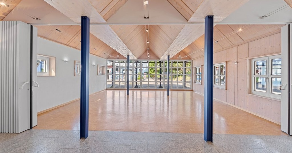 Die Gewerbefläche bietet folgende Ausstattung: – helle, grosse Räume mit Parkettböden und raumhohen Fenstern – Grossraum 56 m2 – 2 Zimmer mit je 19 m2 – Küchenkombination mit Backofen und Herd – 2 WC – Abstellraum 6.5 m2