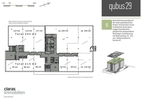 Am dynamischen Business-Standort Kloten, an der Steinackerstrasse 29, befindet sich das umfassend sanierte Büro- und Gewerbegebäude qubus29 . Auf 6 Etagen erwarten Sie in ansprechender und zeitloser Architektur konzipierte Räume, die durch ihr aktuelles Lichtkonzept überzeugen. Von der Einstellhalle bis zur 5. Etage sind alle Geschosse durch Personen- und Warenlifte verbunden. Pro Geschoss steht den Mietern ein Besprechungs-/Pausenraum zur gemeinsamen Nutzung zur Verfügung. Als besonderes Highlight verfügt das Gebäude ausserdem über eine begehbare Dachterrasse, die von allen Mietparteien mitbenutzt werden kann und eine grossartige Aussicht über die Dächer von Kloten und auf den nahgelegenen Flughafen bietet. Zudem stehen Ihnen Innen- sowie Aussen-Parkplätze zur Verfügung.