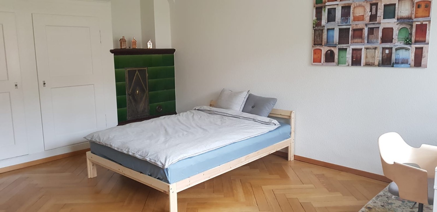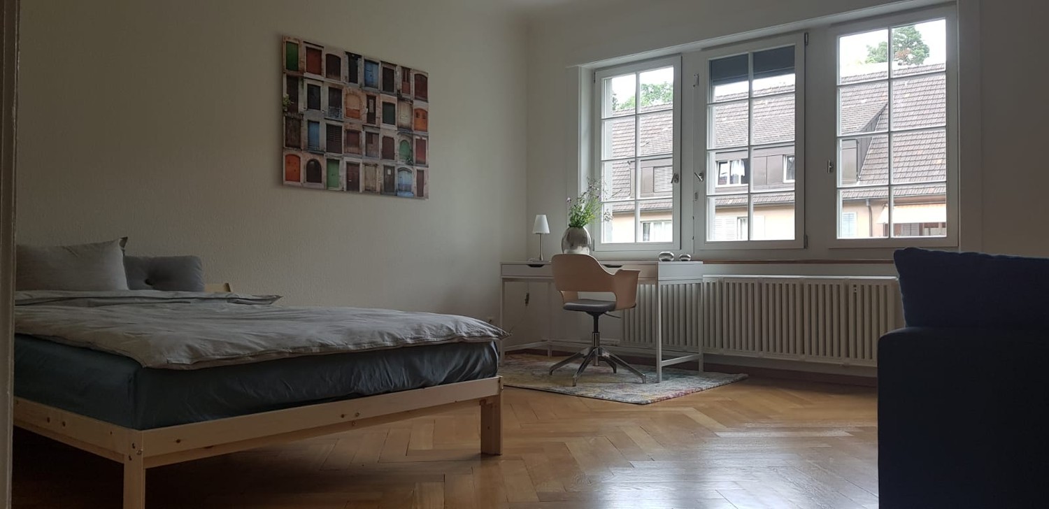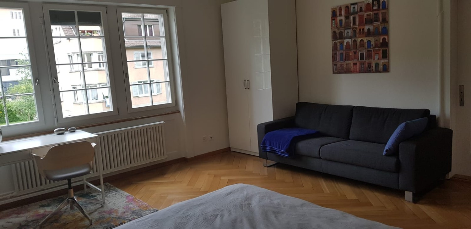 Möbliertes WG-Zimmer in renovierter Wohnung in Zürich Enge ab 1. Mai 2026 frei / Furnished room in a newly renovated flat in Zurich Enge available from 1 May 2026 \[for English see below\] Zum Zimmer – Grosser und heller Raum (25 qm) mit grossem Fenster – Holzparkett – Möbliert (1,40cm-Bett, Schreibtisch und Schreibtischstuhl, Sofa, grosser Kleiderschrank, Einbauschrank) Zur Wohnung – Komplett renovierte Altbauwohnung mit hohen Decken (2.8 m) in der 1. Etage, Lift – Moderne, komplett ausgestattete Küche mit schönem Balkon mit Nachmittagssonne – Neues Badezimmer mit Dusche und Badewanne – 5 Gehminuten zur nächsten Tramstation, 8 Minuten Fahrtzeit bis Zürich HB – 10 Gehminuten bis Bahnhof Zürich Enge – Zwischen Rieterpark und Sihlcity Shopping Center – Sehr ruhige Gegend, kaum Verkehr Über uns – Über A: weiblich, Hauptmieterin, macht Yoga, fährt Rennrad, hat einen Hund (ruhig, bellt nie, fast immer im eigenen Zimmer) – Über D: männlich, arbeitet viel, Wochenaufenthalter, am Wochenende daher fast nie in Zürich Wir suchen eine dritte Person für unsere Dreier-WG. Wir sind in unseren 40ern, berufstätig und beide eher ruhig, immer zu einem spontanen Gespräch aufgelegt, aber keinerlei Geselligkeitszwang. Konditionen – Ab 1. Mai 2026 verfügbar – 1490 CHF/Monat inkl. aller Nebenkosten, SERAFE und Internet – 2 Monatsmieten Kaution – Gesucht: berufstätige Person (m/w), ab 30 Jahre – Alles andere nach Vereinbarung The Room Spacious and bright (25 sqm) with a large window Hardwood flooring Furnished with a 140 cm bed, desk and desk chair, sofa, large wardrobe, and built-in closetThe Apartment Fully renovated period apartment with high ceilings (2.8 m), located on the 1st floor with elevator access Modern, fully equipped kitchen with a lovely balcony that gets afternoon sun New bathroom with both shower and bathtub 5-minute walk to the nearest tram stop, 8 minutes to Zurich main station 10-minute walk to Zurich Enge train station Situated between Rieterpark and Sihlcity shopping center Very quiet neighborhood with minimal trafficAbout us: About A: Female, main tenant, practices yoga, rides a road bike, has a dog (quiet, never barks, mostly stays in her room) About D: Male, works a lot, stays in Zurich during the week and is usually away on weekendsWe’re looking for a third person to join our 3-person shared flat. We’re both in our 40s, working professionals, generally quiet but always up for a spontaneous chat but no pressure to socialize. Terms Available from May 1, 2026 CHF 1490/month including all utilities, SERAFE, and internet 2 months rent as deposit Looking for a working professional (m/f), aged 30 or older* Everything else by arrangement