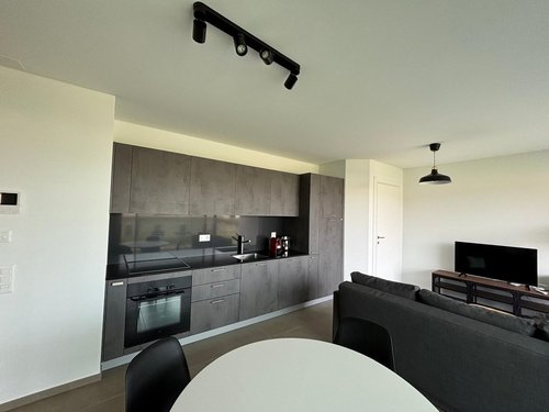L'appartamento è composto da una zona giorno con divano letto, tavolo con sedie, mobile TV, oltre alla cucina e un terrazzo. Nella zona notte separata troviamo la stanza da letto con un armadio, un letto matrimoniale con comodini, il locale bagno e un angolo con la colonna lavatrice-asciugatrice.