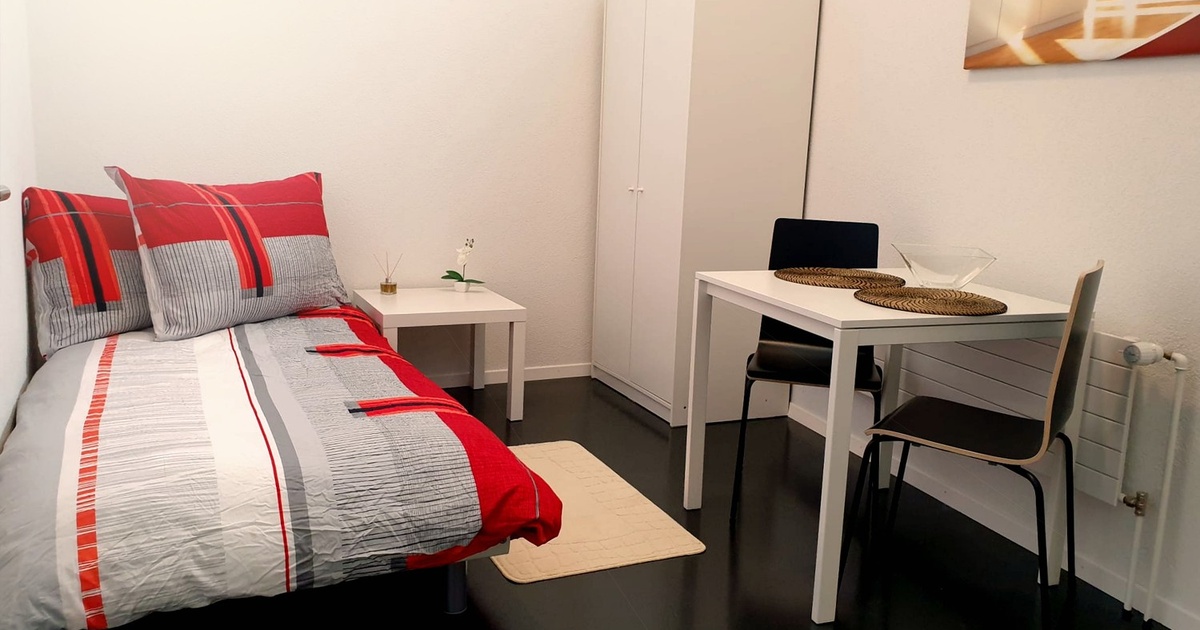 English text bellow Wir bieten Ihnen ein gepflegtes möbliertes Zimmer in Kollbrunn an. Das Zimmer ist hell und modern eingerichtet, mit einem bequemen Bett, einem Tisch mit Stuhl, einem grossen Kleiderschrank, Lampen, einem Regal und einem LCD-TV. Sie erhalten zudem kostenloses WLAN. Alle Nebenkosten, einschliesslich Strom, Wasser und Heizung, sind in der Miete enthalten. Sie besitzen ein eigenes Badezimmer. Zusätzlich stellen wir Ihnen eine Mikrowelle und einen kleinen Kühlschrank im Zimmer zur Verfügung! Wir verlangen keinen Betreibungsauszug und keine Arbeitgeberbescheinigung. Gerne können Sie das Zimmer persönlich besichtigen. Wir freuen uns auf Ihre Anfrage. Bitte beachten Sie, dass es sich bei den bereitgestellten Bildern um Beispielbilder handelt. English We offer you a well-maintained furnished room in Kollbrunn. The room is bright and modern, with a comfortable bed, a table and chair, a large closet, lamps, a shelf and an LCD TV. You will also receive free WLAN. All utilities, including electricity, water and heating, are included in the rent. You have your own bathroom. We also provide you with a microwave and a small fridge in your room! We do not require a debt enforcement extract or employer's certificate. You are welcome to view the room in person. We look forward to your inquiry. Please note that the pictures provided are examples.