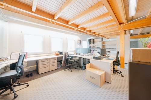 Fläche und Ausstattung: Auf rund 550 m erstreckt sich diese grosszügige Gewerbefläche über zwei Etagen und bietet eine vielseitige Raumaufteilung: • Mehrere Aufenthaltsräume für Mitarbeiter und Besucher • Sitzungszimmer für Besprechungen und Teamarbeit • Eine kleine Küche zur Verpflegung vor Ort • Flexible Gestaltungsmöglichkeiten für verschiedenste Geschäftsnutzungen