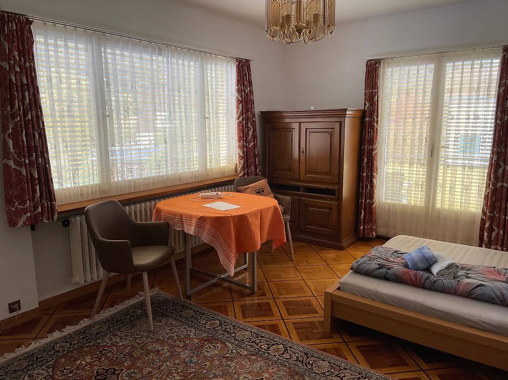 Im Zentrum von Chur, 5 Minuten ab Hauptbahnhof zu Fuss. Zweckmässig eingerichtet. Ideal für Wochenaufenthalter oder Studenten oder Arbeiter. Inklusive Bett- und Frottewäsche. Ab 750.00 CHF pro Monat für 1 Person, + 350.00 CHF für 2. Person im gleichen Zimmer. Wochen- und Tagespreise auf Anfrage. Einzugspauschale 50.00 CHF und Endreinigung 80.00 CHF pro Person. Auf der Etage sind 2 Badezimmer mit täglicher Reinigung ausser Sonntag, vollausgestattete Küche, Terrasse und Aufenthaltsraum zur Mitbenutzung. Waschmöglichkeit vorhanden. Alle Räume sind rauchfrei. Parliamo anche italiano.