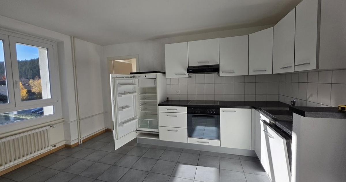 Situé au 4ème étage, cet appartement 4.5 pièces vous séduira par son agencement fonctionnel et sa luminosité. Caractéristiques – Hall d'entrée – Cuisine agencée ouverte sur un vaste séjour lumineux donnant accès à un balcon avec vue dégagée – Trois chambres – Salle de bain – WC séparé Possibilité de louer une place de parc extérieure à CHF 60.00 par mois ou un garage individuel à CHF 150.00 par mois selon les disponibilités.