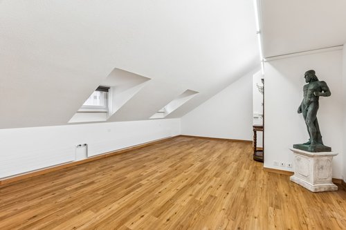 Im Geschäftshaus an der Schweizergasse 10 vermieten wir nach Vereinbarung das gesamte 5. Obergeschoss mit ca. 70m² als Büro- oder Praxisfläche nutzbar. Das Raumangebot Die nicht alltäglich Fläche ist durch die zahlreichen Dachflächen- & Oblichtfenster sehr lichtdurchflutet und eignet sich aufgrund der Aufteilung sehr gut für eine Nutzung als Büro-, Praxis- oder Coachingbetrieb. Die Mietfläche ist klassisch ausgebaut und verfügt über einen grossen Open-Space-Bereich mit ca. 35 m2 sowie einen kleineren Bereich mit ca. 10 m2. Auf der rückwärtigen Seite zum malerischen Innenhof hin liegt die grosszügige Teeküche mit Waschmöglichkeit. In der Fläche ist ebenfalls eine moderne Dusche mit WC und Lavabo integriert. Die Lage Die Liegenschaft Schweizergasse 10 befindet sich inmitten der Zürcher Innenstadt vis-à-vis dem prominenten Warenhaus «Globus». Die Bahnhofstrasse und der Hauptbahnhof Zürich mit direkter Anbindung an den öffentlichen Verkehr sowie an den Puls des innerstädtischen Lebens sind nur wenige Gehminuten entfernt. Das Gebäude befindet sich an leicht versetzter Lage mit eigenem Innenhof, wodurch die Hektik des Bahnhofsviertels an der Liegenschaft vorüberzieht. Diverse Einkaufsmöglichkeiten und Verpflegungsoptionen sowie die Pestalozzianlage komplettieren das Angebot sowohl für Ihre Kunden wie auch Ihre Mitarbeitenden optimal. Haben wir Ihr Interesse geweckt? Kontaktieren Sie uns - gerne zeigen wir Ihnen die Büro- oder Praxisfläche unverbindlich vor Ort.