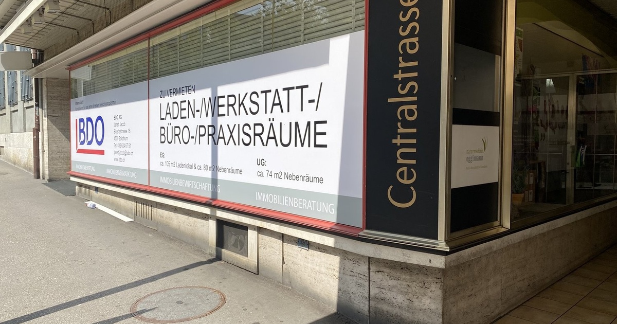 Wir vermieten eine Fläche von 105 m2 und frisch renovierten Nebenräumen von 80m2 im EG. Bei Bedarf Bedarf stehen im UG noch 74 m2 Lagerflächen zur Verfügung. Die monatliche Nettomiete beläuft sich somit auf CHF 1'900.00 und die Nebenkosten-Akonto auf CHF 550.00. Das Objekt bietet Ihnen folgende Annehmlichkeiten: – Fläche im EG mit grosser Schaufensterfront – Sonnenstore vorhanden – frisch renovierte Toilette mit Lavabo im EG – neu sanierter Raum im Backoffice mit kleiner Teeküche – 2 Lagerräume im EG Die Räume befinden sich an einer gut frequentierten Lage im Zentrum von Grenchen und bietet Ihnen vorzügliche Erreichbarkeit mit dem Auto und den Öffentlichen Verkehrsmitteln. Sind Sie interessiert? Wir freuen uns auf Ihre Kontaktaufnahme.
