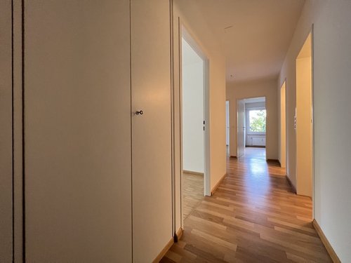 Die Fussböden in der Küche und in den zwei Badezimmern sind mit Platten belegt. Die Wohn- und Schlafräume sowie der Korridor verfügen über einen Parkettboden.