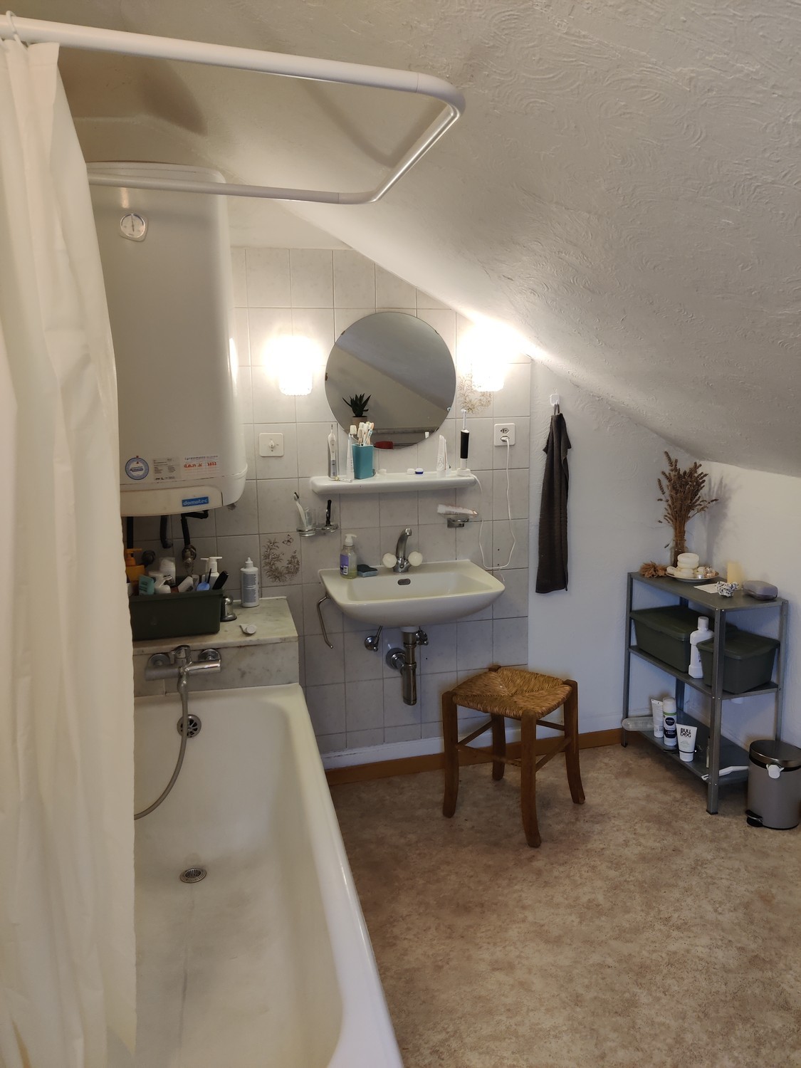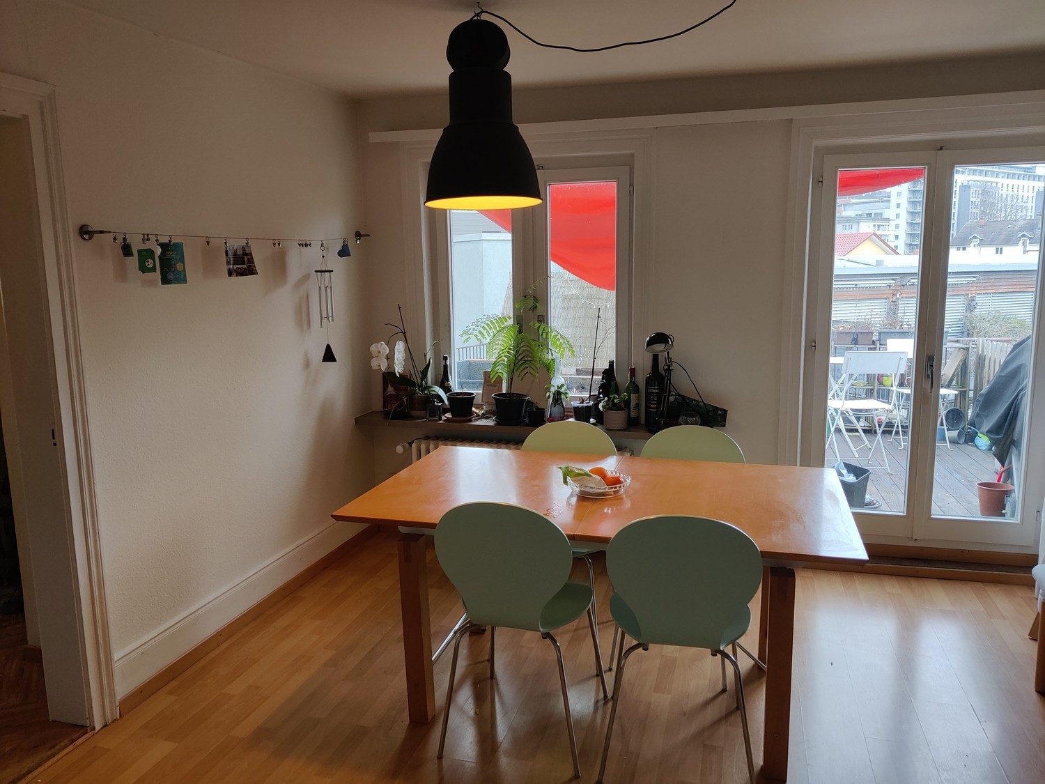 Das Zimmer In unserer 4er-WG wird ab dem 1. April 2026 ein Zimmer frei. Die Wohnung liegt etwa 10 Gehminuten vom Bahnhof Winterthur entfernt, mit dem Velo erreicht man ihn in weniger als 5 Minuten. Das Zimmer ist sehr gross (20 m²) und dank der grossen Fensterfront sehr hell. Die Wohnung bietet: • zwei WCs • ein separates Badezimmer mit Dusche • eine geräumige Küche mit Gasherd • viele praktische Abstellmöglichkeiten Das Haus ist etwas älter, aber funktional. Zudem gibt es eine gemeinschaftlich genutzte Terrasse, die gerne weiter begrünt oder gestaltet werden kann. Miete: 575 CHF pro Monat Zusätzlich fallen vierteljährliche Energiekosten von ca. 4 × 90 CHF an. Wir suchen Eine zuverlässige Person im Alter von 20–35 Jahren, die gut in unsere WG passt. Bitte schickt uns eine kurze Nachricht mit: • Name • Alter • ein paar Sätzen über euch Danach erhaltet ihr die genaue Uhrzeit und Adresse für eine Besichtigung. Wichtig: Wir suchen einen neuen Hauptmieter*in, die/der bereit ist, eine Mietbürgschaft zu übernehmen. Wir sind Die WG besteht aus Ana, Nicolas und Sandra (alle Mitte bis Ende zwanzig). Wir pflegen ein entspanntes Zusammenleben. Da wir beruflich und im Studium stark eingespannt sind, sind wir teilweise mehrere Tage nicht zu Hause – ruhige Phasen in der Wohnung sind daher ganz normal. \ English version The Room A room in our shared flat of four people will be available from April 1, 2026. The apartment is about a 10-minute walk from Winterthur train station and can be reached in under 5 minutes by bike. The room is very spacious (20 m²) and receives plenty of natural light thanks to large front-facing windows. The apartment includes: • two toilets • a separate bathroom with a shower • a spacious kitchen with a gas stove • plenty of practical storage space The building is somewhat older but functional. There is also a shared terrace that can be further planted or decorated if desired. Rent: 575 CHF per month Additional quarterly energy costs of about 4 × 90 CHF apply. Who We Are Looking For We are looking for a reliable person aged 20–35 who fits well with the shared flat. Please send us a short message including: • your name • your age • a few sentences about yourself You will then receive the exact viewing time and address. Important: We are looking for a new main tenant who is willing to provide a rental guarantee. About Us The flat is shared by Ana, Nicolas, and Sandra (all in their mid to late twenties). We maintain a relaxed atmosphere. Since we are busy with work and studies, we are sometimes away for several days, so quiet periods in the apartment are completely normal.