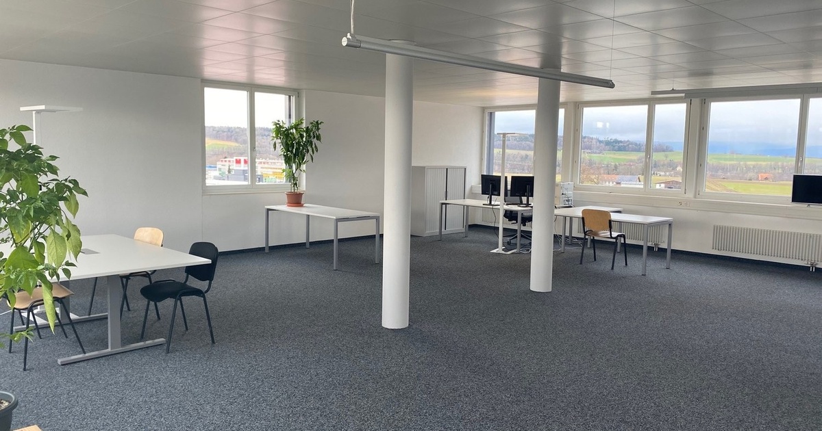 zu vermieten ab 1. März 2024 oder nach Vereinbarung, moderne Bürofläche an der Birchstrasse in Düdingen Gesamtfläche von 101m2 im 1. Stock mit Aufzug WC gemeinschaftlich pro Stock Zutritt mit Badgesystem Grosser Gemeinschaftsraum mit Küche und Terrasse auf dem Dach der Liegenschaft Mieter und Kundenparkplätze vor dem Haus Direkt am Autobahnanschluss A12 Miete : CHF 1'750.00 + CHF 250.00 Nebenkosten Für weitere Auskünfte oder eine unverbindliche Besichtigung vor Ort stehen wir Ihnen gerne zur Verfügung. à louer dès le 1er mars 2024 ou à convenir, surface de bureau moderne à Guin surface totale de 101 m2 WC commun par étage local technique commun par étage accès locataire avec badge grande salle commune avec cuisine et terrasse sur le toit de l'immeuble Parking locataires et clients devant l'immeuble accès autoroute A12 à 2 pas Loyer : CHF 1'750.00 + CHF 250.00 charges Nous restons volontiers à votre disposition pour tout complément d'information ou une éventuelle visite sur place.