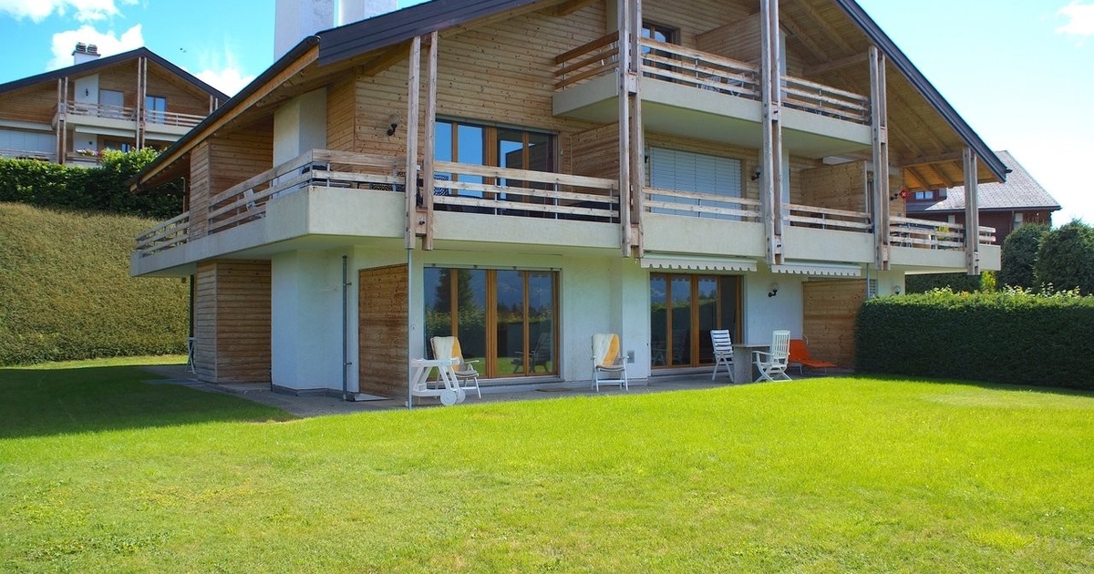 Disponible à partir de: CHF 1'400.-/semaine*. Grand 3 pièces de 110 m2, fraichement rénové, au pied du trou n7 du golf Ballesteros. Situation calme et ensoleillée avec une magnifique vue sur les Alpes et la vallée du Rhône. Comprenant: – 1 cuisine ouverte sur le living, avec plaques vitrocéramiques, four, réfrigérateur avec petite partie congélation – 1 grand living salle à manger sud sur jardin, avec cheminée, TV et 1 canapé-lit pour 2 personnes – 1 chambre à coucher avec un grand lit pour 2 personnes; – 1 salle de bains avec w.c., lavabo; – 1 chambre nord avec 1 grand lit pour 2 personnes avec dressing; – 1 salle de bains avec w.c., lavabo et 1 lave-linge – 1 box fermé pour 2 voitures (L :2.30 / H :2.30) et dépôt de skis Linge de maison, vaisselle, sans ascenseur. Remarque: l'accès par le garage, rampe d'escaliers couverte conduit du garage au rez du chalet • Nos prix sont sujets à variation, selon la période et les saisons. Plus d'informations ? Contactez-nous sans plus attendre ! ImmoCrans SA +41 (0)27 483 83 83 Available from: CHF 1'400.-/week*. Large, freshly renovated 110 m2 3-room apartment at the foot of hole n7 of the Ballesteros golf course. Quiet, sunny location with magnificent views of the Alps and Rhone Valley. Comprising: – 1 kitchen open onto the living room, with ceramic hob, oven, fridge with small freezer compartment – 1 large living-dining room south facing garden, with fireplace, TV and 1 sofa bed for 2 people – 1 bedroom with double bed for 2 people; – 1 bathroom with w.c., washbasin; – 1 north bedroom with 1 double bed for 2 persons with dressing room; – 1 bathroom with w.c., washbasin and 1 washing machine – 1 closed box for 2 cars (L :2.30 / H :2.30) and ski deposit Household linen, crockery, no elevator. Please note: access via garage, covered staircase ramp leads from garage to chalet ground floor *Our prices are subject to variation, depending on period and seasons. More information? Contact us now! ImmoCrans SA +41 (0)27 483 83 83 Disponibile a partire da: CHF 1'400.-/settimana*. Grande appartamento trilocale di 110 m2, appena ristrutturato, ai piedi della buca n7 del campo da golf Ballesteros. Posizione tranquilla e soleggiata con magnifica vista sulle Alpi e sulla Valle del Rodano. – 1 cucina aperta sul soggiorno, con piano cottura in vetroceramica, forno, frigorifero con piccolo scomparto freezer – 1 ampio soggiorno/sala da pranzo esposto a sud sul giardino, con camino, TV e 1 divano letto per 2 persone – 1 camera con letto matrimoniale per 2 persone; – 1 bagno con w.c., lavabo; – 1 camera da letto nord con 1 letto matrimoniale per 2 persone con spogliatoio; – 1 bagno con w.c., lavabo e 1 lavatrice – 1 box chiuso per 2 auto (L :2.30 / H :2.30) e deposito sci Lenzuola, stoviglie, no ascensore. Nota bene: accesso dal garage, rampa coperta conduce dal garage al piano terra dello chalet • I nostri prezzi sono soggetti a variazioni, a seconda del periodo e delle stagioni. Più informazioni? Contattateci oggi stesso! ImmoCrans SA +41 (0)27 483 83 83