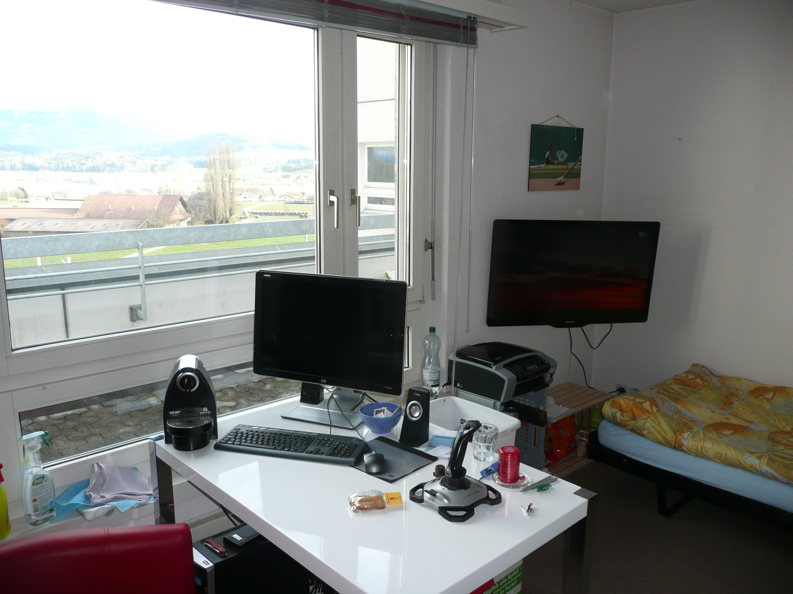 Hallo unkomplizierte/r Frau/Mann, wellcome in unserer kleinen WG mit eigenem, separatem Eingang, WC/Dusche, kl. Küche, grosse Terrasse mit excl. Aussicht, TV, WiFi, Waschen, Strom, Heizung, alles inkl. sehr ruhig trotz Nähe von Bus-und SBB-Station und auch Autobahnanschlüsse in alle Richtungen!