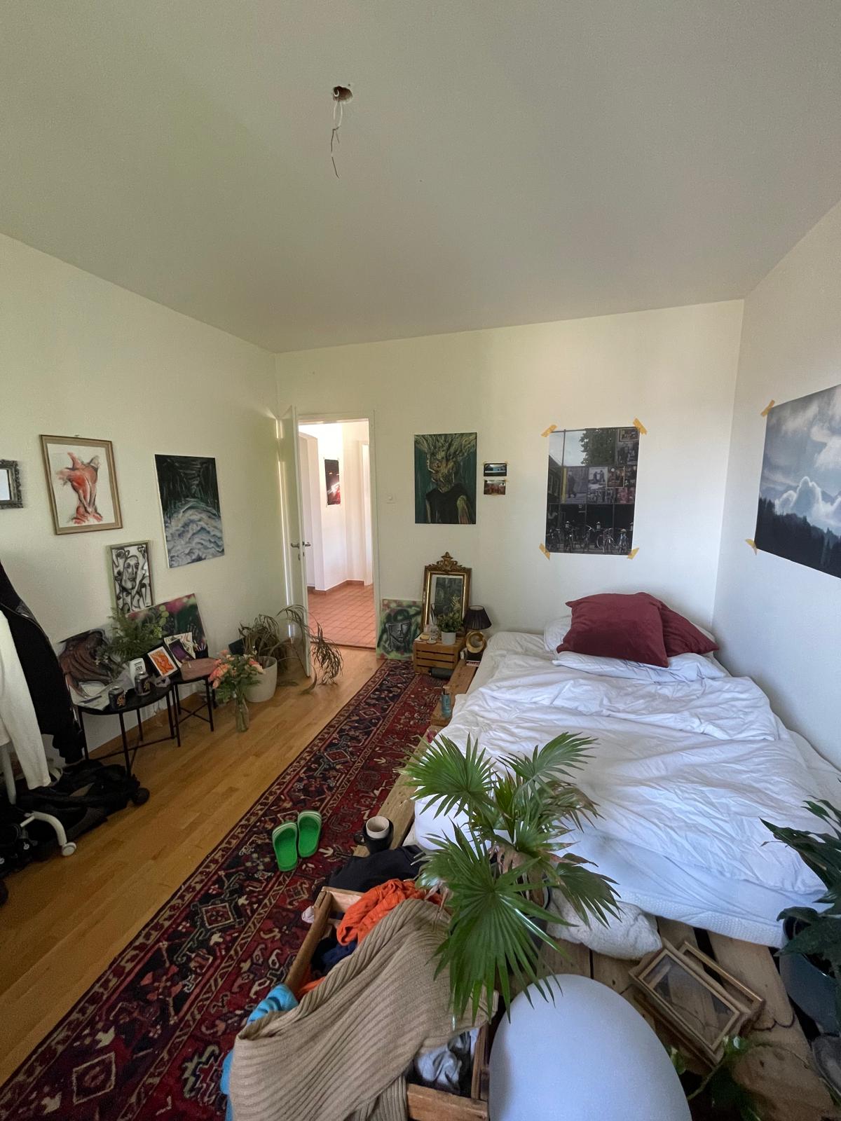 Bright Room in Well-Connected 3-Room Apartment (from now onwards/upon agreement)The room is approximately 15 m² (see photos) and part of a 3-room apartment. It is unfurnished (the furniture shown in the photos is not included). The apartment features a fully equipped kitchen, a shared bathroom, and a dining area. There is a laundry room in the basement shared with the building’s residents, as well as ample storage space in the shared attic.Right behind the apartment is a forest, perfect for walking, jogging, or cycling. The location is very well connected: a tram stop is just below the building, and a bus stop is across the street. Oerlikon, the city center, and essential shops are all easily reachable within a short public transport ride.About UsWe are two guys (24 / 27 years old), studying at EPFL and HSG. We’re easygoing, respectful, and enjoy a friendly, relaxed atmosphere at home. What We’re Looking ForWe’re looking for a new flatmate from now onwards. The rental contract is fixed-term until the end of January 2027. The room is cozy and part of a charming older house.If this sounds like a good fit, feel free to send us a message with a few lines about yourself- we’d be happy to hear from you 😊