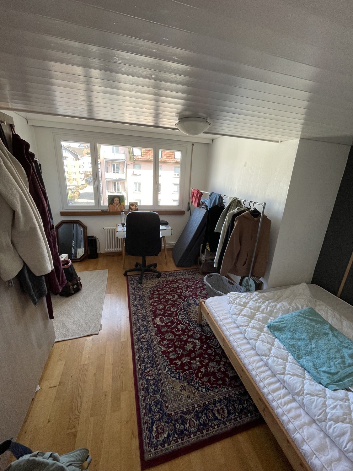 Da ich ausziehe, wird mein schönes 16 m2 grosses Zimmer in unserer 3,5-Zimmer-Wohnung frei. Das Zimmer ist unmöbliert, das Bett inkl. Matratze kann bei Interesse gerne gegen einen Abschlag übernommen werden. Deine zukünftigen Mitbewohnerinnen sind: Anh (22) ist eine super herzliche, offene Grafikdesignerin. Sie liebt es, zu kochen und lebt sich gern kreativ aus. Hannah (23) beginnt ab April ein Praktikum in St. Gallen im Bereich Marketing und zieht dafür aus Deutschland zu uns in die WG. In der WG schätzen wir ein offenes, respektvolles Miteinander und verbringen gerne Zeit zusammen, wobei wir trotzdem jederzeit Verständnis dafür haben, wenn man sich zurückziehen und Zeit für sich möchte. Die Lage ist super: Die Bushaltestelle “St.Gallen Lachen” ist nur wenige Schritte entfernt und bringt dich in 4 Stationen direkt zum Bahnhof. Ein Migros befindet sich direkt vor der Haustür. Das Zimmer ist ab dem 01.05. unbefristet verfügbar. Wenn du Interesse hast, freuen wir uns über eine kurze Nachricht mit ein paar Infos zu dir 😊