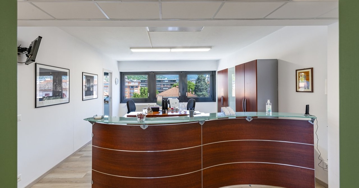 In una zona centrale di Lugano,posto in posizione strategica di forte passaggio veicolare e pedonale,vi proponiamo un ufficio di ca. 273 mq. L'ufficiodotato di cablaggio e impianto di climatizzazione,si trova al 2 piano ed è composto da: Area reception 8 Locali per uso ufficio di diverse dimensioni 1 Locale cucina 2 servizi 2 terrazze con vista ad est 4 terrazze con vista a sud Posteggio coperto a disposizione CHF 220.- al mese. L'oggetto si presta perfettamente per clienti con elevate esigenze in termini di posizione, di prestigio, funzionalità e sicurezza e tranquillità. In a central area of Lugano, located in a strategic position with strong vehicular and walking traffic, we propose an office of approx. 273 sqm. The office, equipped with cabling and air conditioning, is located on the 2nd floor and consists of: Reception area 8 Rooms for office use of different sizes 1 kitchen room 2 bathrooms 2 terraces with a view to the east 4 terraces with view to the south Covered parking space available for CHF 220 per month. The object is perfectly suited for customers with high demands in terms of location, prestige, functionality and security. .