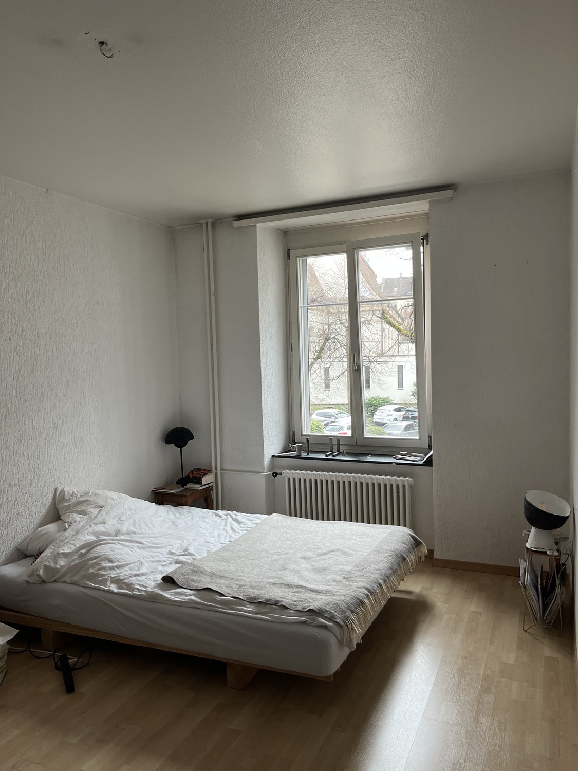 4 Zimmerwohnung mit Balkon(en) im ersten Stock. Das Zimmer ist ca 9m2 groß und wäre teilmöbliert zu haben. Auserdem gibt es ein ca. 12m2 großes Wohnzimmer mit Zugang zum Balkon. Küche und Bad sind in gutem Zustand und werden selbstverständlich geteilt. Perfekte Lage, direkt an der Tramhaltestelle Quellenstrasse zwischen Limmatplatz und Escher Wyss Platz gelegen. Verschiedenste Supermärkte in Fußdistanz, die Badi Unterer Letten direkt um die Ecke, die Langstrasse auch und auch zum HB sind es nur 3 Stationen mit der Tram. Wir wohnen aktuell zu dritt in der WG. Eva und Leon arbeiten als Architekt:innen und Lisa als medizinische Praxisassistentin. Da Eva kurzfristig mit ihrem Freund in eine neue Wohnung zieht, ist ihr Zimmer ab 1. April bis Ende Juni für drei Monate frei für eine Zwischenmiete. Eventuell wird auch Lisa's etwas grösseres Zimmer vom 1. Mai bis Ende Juni frei für eine Zwischenmiete. Schreib doch gerne 2-3 Sätze über dich, so dass wir ein bisschen ein Bild von dir bekommen können.