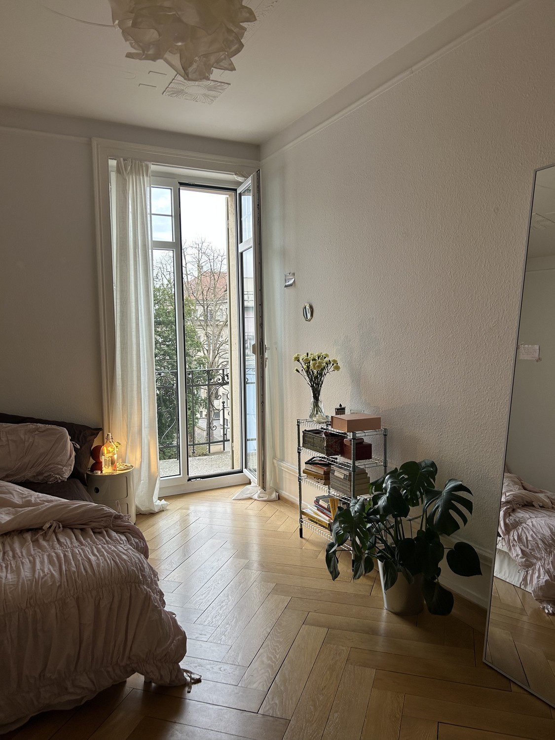 Das Zimmer ist 15,3m^2 gross und verfügt über einen Balkon auf eine ruhige Strasse. Die Wohnung ist eine 3-er WG und verfügt über ein Wohnzimmer, eine vollausgestattete Küche mit Waschturm und Spülmaschine und einen Balkon. Bad und WC sind separat. Du wirst mit Agonis (34J) und Tino (27J) wohnen. Agonis ist Sozialpädagoge, aufgeschlossen, mag Filme, liest gerne über Politik und Psychoanalyse und geht gerne mal aus. Tino studiert Architektur, treibt viel sport und kocht gerne. Wir suchen eine offene und kontaktfreudige Person (am besten zwischen 25 und 35 Jahre alt) die ab April oder spätestens den 1. Mai das frei werdende Zimmer übernehmen will! Wir haben es gerne sauber und ordentlich. Da die WG freundschaftlich und unkompliziert ist, wünschen wir uns das auch in Zukunft weiterhin. Bei Interesse kontaktiere mich mit einer kurzen Beschreibung und einem Foto. Wir freuen uns von dir zu hören! :)