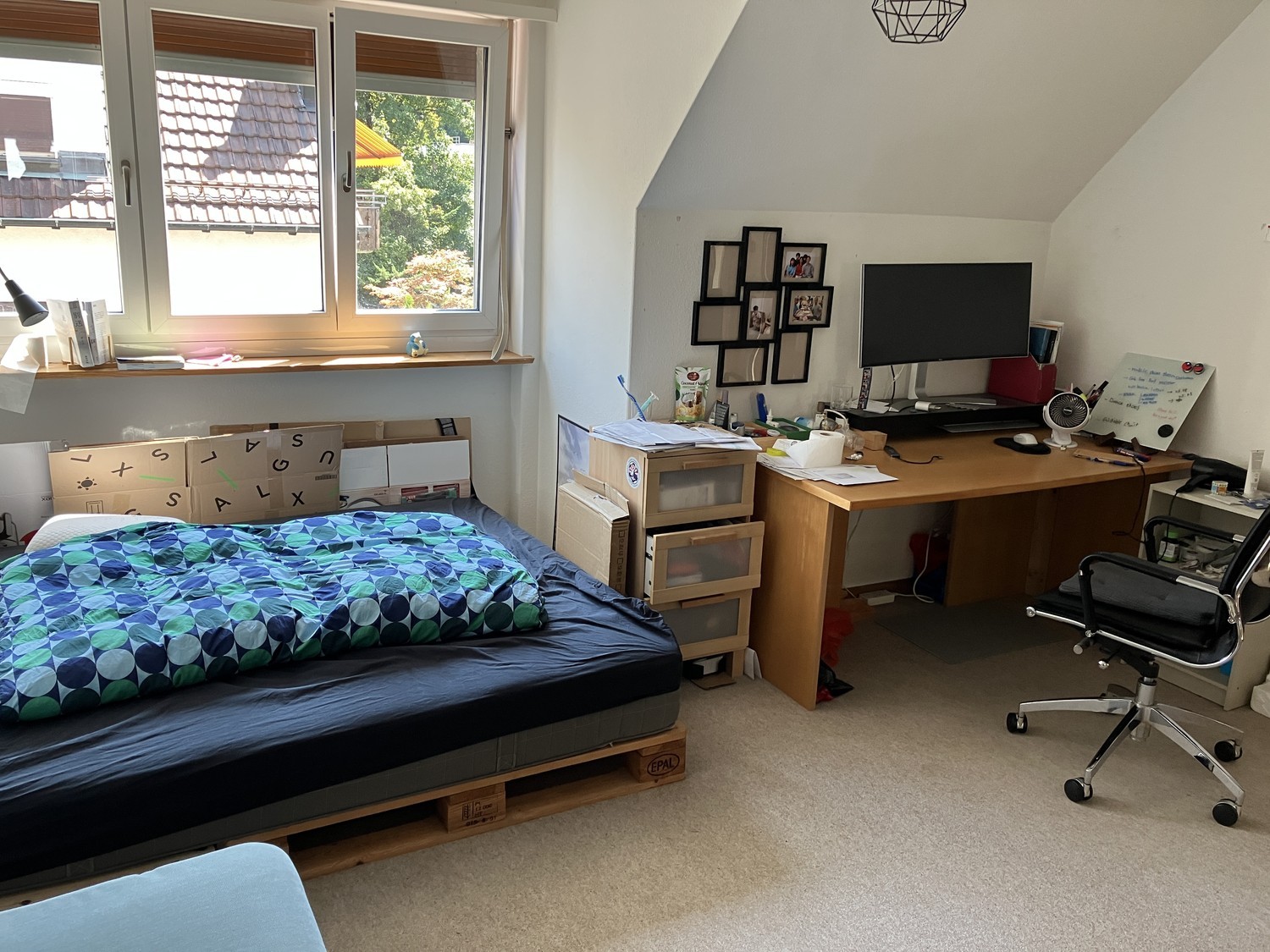 Because I am leaving Zurich at the end of April 2026, we are looking for a person to take over my room starting from/around 01.05.2026 (or upon agreement). The WG includes 4 bedrooms, 1 dining room, 1 kitchen, and 1 toilet. The other three roommates are all students in Zürich. A Liechtensteiner bachelor student at ETH (21,m), a Lebanese master student at ETH (25,m), and an Italian PhD student at UZH (27,m). The flat speaks mostly English and activities are organised from time to time. The landlord of the flat is responsible, usually reply our emails within 1 day, sometimes 3 days if the request is more complicated. Emergencies such as electricity or heat shortages were handled on the same day. Location: The location of the flat is 15 mins to the University Irchel and Zürich HB, 20 mins to ETH Hönggerberg and ETH HG. In 6 mins walk you can find 2 Coops, 1 Aldi, 2 Migros, 2 Asian shops, and Oerlikon Bahnhof. Rent: The exact rent will depend on the new contract with the landlord. The rent listed in the ad (800+100) is the one I will be paying in April 2026. The utilities include electricity and internet. Rooms: Your bedroom will be the largest in the flat (~19qm). The room has two windows on two sides, through which you can directly ventilate your room. It has a little balcony shared with another roommate. The bed will stay in the room, and the rest can be negotiated. In the kitchen, there is an electric hob from mid 2025, a half-automatic coffee machine, a dry-food shelf, a large cabinet, and a fridge. In the bathroom, there is a bathtub, a toilet, and a small sink. The roommates use the bathroom at a regular time in the morning, so usually there is no conflict in using it. Facilities: – bathtub – dishwasher – washing machine – coffee machine Who are you: Because of the rental agreement, the rent of the flat should not excess 30% of the combined income from the main tenant and the guarantor. Therefore, we are looking for someone with an income higher than 60k a year. Please write a short introduction about yourslef including: your job/study, how long you plan to stay, how you imagine a WG to be, ... and other things you think we would like to know :)