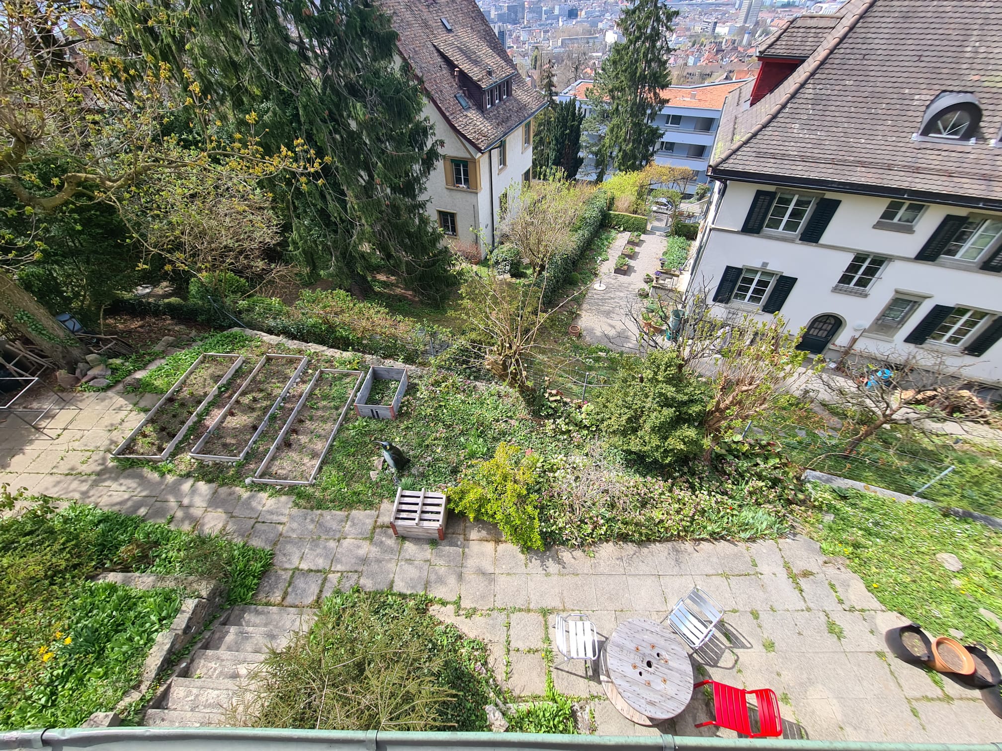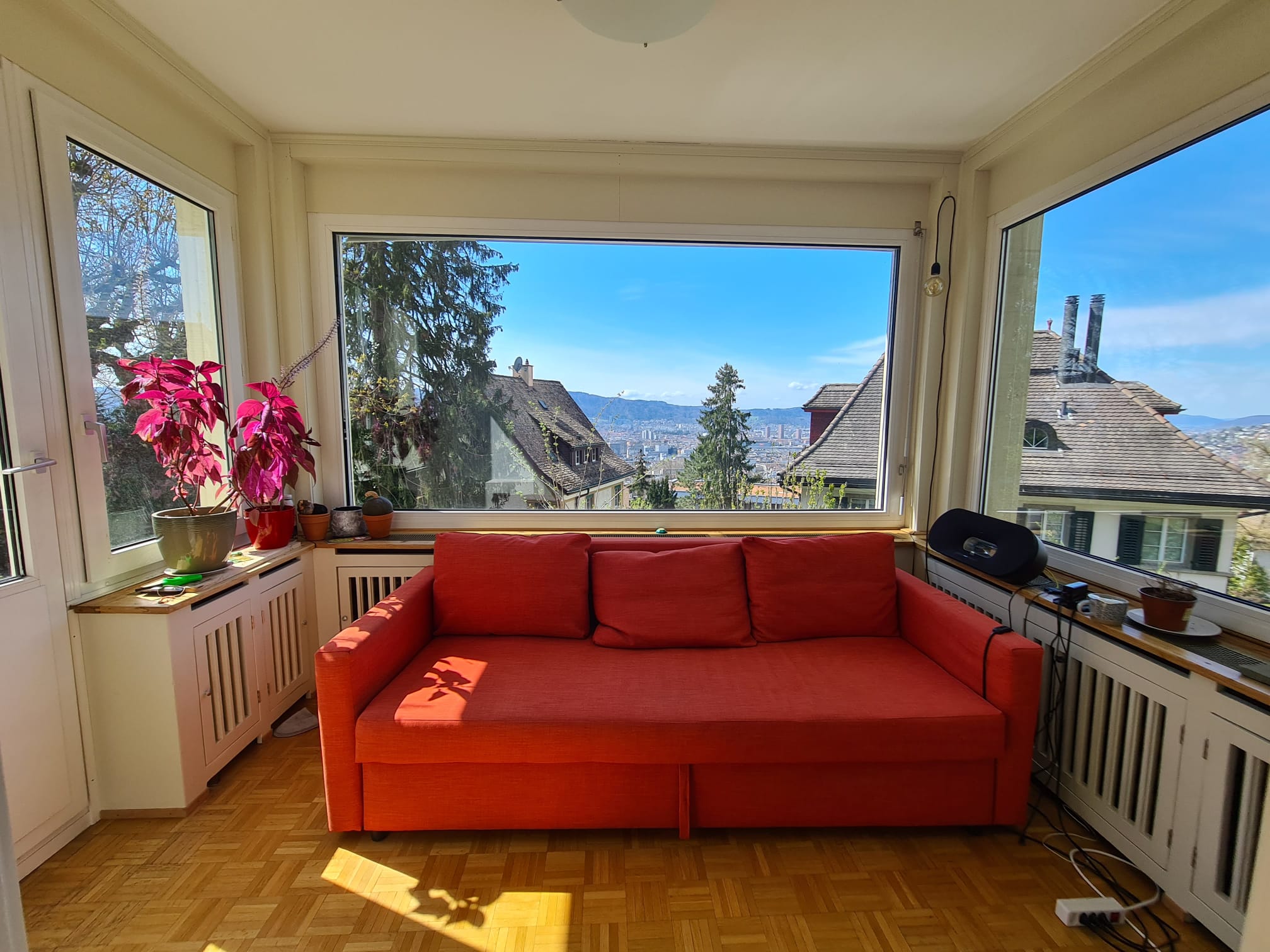 Dein ZimmerDas Zimmer selbst ist eher klein, dafür sehr gemütlich. Für alle, die im Homeoffice arbeiten oder einfach mal mehr Platz brauchen, steht in einem der Wohnzimmer zusätzlich ein Schreibtisch zur Verfügung.Das Haus erstreckt sich über drei Stockwerke und bietet dadurch viel Privatsphäre und Freiraum. Wir sprechen (fast) alle (CH-)Deutsch und Englisch und haben je nach Hintergrund noch ein paar weitere Sprachen im Repertoire.Deine LageWir schätzen unser Haus sehr. Von zwei Balkonen aus haben wir eine recht wunderschöne Aussicht über ganz Zürich. Rund ums Haus gibt es einen grossen Garten, in dem auch mal gemeinsam angepackt wird. Das Quartier ist ruhig und liegt nahe beim Rigiblick und Zoo - der Weg in die Natur ist also nur einen Katzensprung entfernt.Deine MitbewohnerDeine zukünftigen Mitbewohner:innen wären:Chloé (Tierärztin und Pferdeflüsterin) – hat schon in x Ländern gelebt, findet Blindschleichen süss und kann mit ihrem Lachen jede:n aus einem Tag mit schlechter Laune rettenVinzenz (Data Engineer) – entweder tiefenentspannt in der Hängematte im Wald oder auf Ricardo unterwegs; WG-Gesundheitsengel mit einer erstaunlich gut ausgestatteten HaushaltsapothekeTino (Maschinenbauer) – unser inoffizieller WG-Papa, immer zu haben für ein Bierchen und ein gutes Gespräch auf der Terrasse; weiss ausserdem, wie man so ziemlich alles repariertTim (Finance Guru) – Neuzugang und grossartiger FC St. Gallen Fan. Flucht zu Fußballspielen am Tablet und treibt gerne Sport. Lebensgrosser Zinseszins-Rechner der gerne kocht und gute Unterhaltungen schätzt.Francesco (Psychiater) – leidenschaftlicher Bergsportler, Natur- und Gartenmensch und unser WG-Philosoph mit Sinn für tiefe Gespräche. Ebenso sehr guter Koch!Flora – Die mit dem grünen Daumen und grossen Hang zu Wintersport. Junges Alter und dennoch die inoffizielle WG-Mama. Kann nicht stillsitzen und immer in Bewegung (im guten Sinne).Wir sind definitiv keine Zweck-WG. Trotz eigener Leben verbringen wir immer wieder gerne Zeit miteinander – sei es bei Gesprächen, beim gemeinsamen Essen oder einfach draussen im Garten.Dein SonstigesIn den Nebenkosten inbegriffen sind unter anderem die Kosten für eine Putzkraft, die einmal pro Woche kommt und sich um die Pflege der Gemeinschaftsräume kümmert.Das Zimmer steht zum 01.04. zur Verfügung (nach Absprache auch später).Ein weiteres Zimmer wird im Sommer aufgrund von Familienplanung im Sommer frei. Solltest du also erst im Sommer (Juni, Juli, August) umziehen wollen, kannst du ebenso gerne vorbeikommen.Wenn du dich in dieser Beschreibung wiederfindest und das Gefühl hast, gut in unsere WG zu passen, freuen wir uns sehr über ein paar Zeilen zu dir.Herzliche Grüssedeine WG Germi-strasse 🏡Your RoomThe room itself is rather small, but very cozy. For anyone who works from home or simply needs more space, there is an additional desk available in one of the living rooms.The house spans three floors, which provides a lot of privacy and room to breathe. We speak (mostly) Swiss German and English and, depending on background, a few other languages as well.Your LocationWe really appreciate our house. From two balconies we have a pretty wonderful view over the whole of Zurich. Around the house there is a large garden where people sometimes pitch in together. The neighborhood is quiet and close to Rigiblick and the zoo — so access to nature is just a stone’s throw away.Your HousematesYour future housemates would be:Chloé (veterinarian and horse whisperer) – has lived in several countries, finds slow‑worms cute, and can lift anyone out of a bad‑mood day with her laugh.Vinzenz (data engineer) – either deeply relaxed in the hammock in the woods or browsing Ricardo; the flatshare’s health angel with an impressively well‑stocked household first‑aid kit.Tino (mechanical engineer) – our unofficial flatshare dad, always up for a beer and a good conversation on the terrace; also knows how to fix pretty much anything.Tim (finance guru) – newcomer and great FC St. Gallen fan. Escapes to football matches on his tablet and likes to do sports. A living, breathing compound‑interest calculator who enjoys cooking and good conversations.Francesco (psychiatrist) – passionate mountaineer, nature and garden person, and our flatshare philosopher who appreciates deep conversations. Also a very good cook.Flora – the one with the green thumb and a big love of winter sports. Young but the unofficial flatshare mum. Can’t sit still and is always on the move (in a good way).We are definitely not a purely functional flatshare. Despite having our own lives, we enjoy spending time together again and again — whether chatting, eating together, or simply being outside in the garden.Other InformationIncluded in the utilities is, among other things, the cost of a cleaner who comes once a week and takes care of the communal areas.The room is available from 1 April (later by arrangement is possible). Another room will become available in the summer due to family planning. So if you only want to move in during the summer (June, July, August), you are also welcome to come by.If you recognize yourself in this description and feel you would be a good fit for our flatshare, we would be very happy to receive a few lines about yourself.Kind regardsYour WG Germi‑strasse
