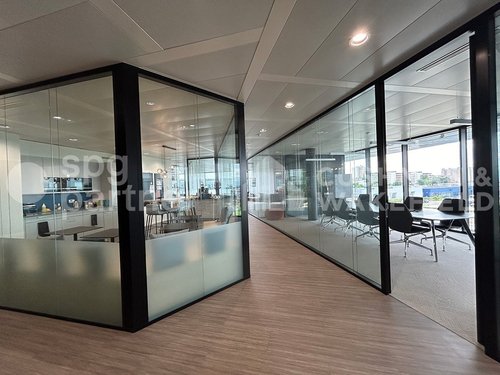 Aménagements de qualité : • Stores électriques automatisés • Fibre optique • Plancher technique • Faux plafond technique avec rafraichissement d’air • Serveur informatique • Terrasse au rez-de-chaussée • Parking intérieur et extérieur