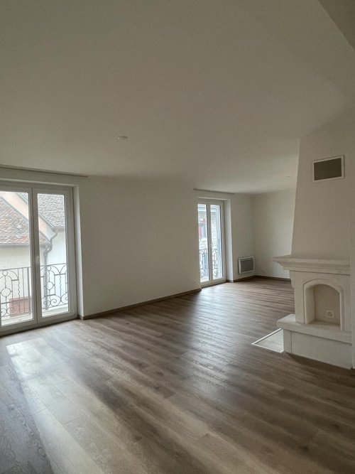 Très grand appartement 4.5 pièces d'environ 145 m2 à Crassier. La distribution est la suivante : – spacieux hall d'entrée accompagné d'armoires murales – cuisine agencée avec grande salle à manger et rangements – grand salon lumineux avec poêle à pellets et long balcon – trois chambres avec vue sur la Dole ou le Jura, dont une avec balcon – salle de douche avec WC – salle de bains avec WC – buanderie "équipable " Toutes les fenêtres sont équipées de triple vitrage pour un confort optimal. Un poêle à pellets situé au centre du salon permet de chauffer l'appartement de manière écologique. Une cave de 16,5 m2 complète ce bien. Deux places de parc extérieures sont au prix de Frs 75.-- x 2. Loyer : CHF 3'380.- + forfait mensuel de Frs 80.-- Disponibilité de suite