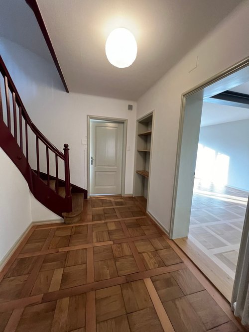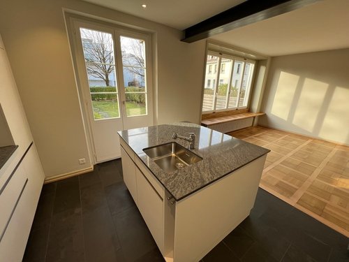Charmantes, neu renoviertes 7-Zimmer-Reiheneinfamilienhaus mit grossem Sitzplatz zu vermieten. Das Reiheneinfamilienhaus ist an einer ruhigen Lage und ist wie folgt ausgestattet: – Moderne Küche mit Waschinsel mit Granitabdeckung – Parkettboden, Riemenboden im Wohnraum + Schlafzimmer – Schachbrett-Boden in Sep-WC – Grosser Garten mit grossem Sitzplatz – Zwei Badezimmer mit Dusche/Badewanne und ein Sep-WC – Diverse Einbauschränke – Grosser Keller Naturboden und betoniert – Waschturm im Keller und Waschbecken – Reduit Garage kann für CHF 100.00 pro Monat dazugemietet werden. Quartier im Überblick – jetzt Drohnenvideo ansehen: https://www.youtube.com/watch?v=vC41tZKdQJE