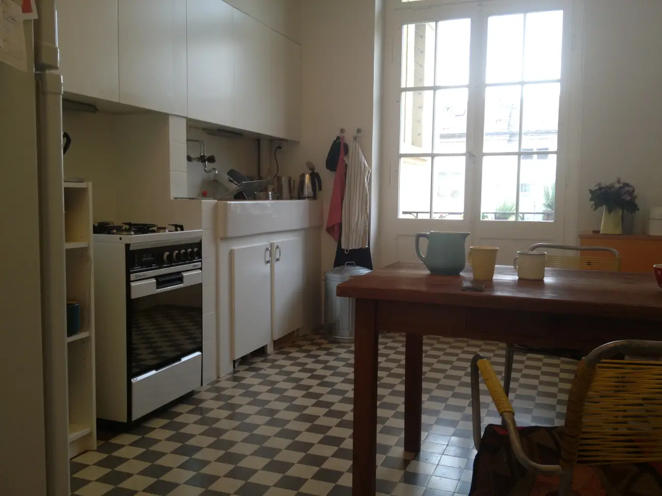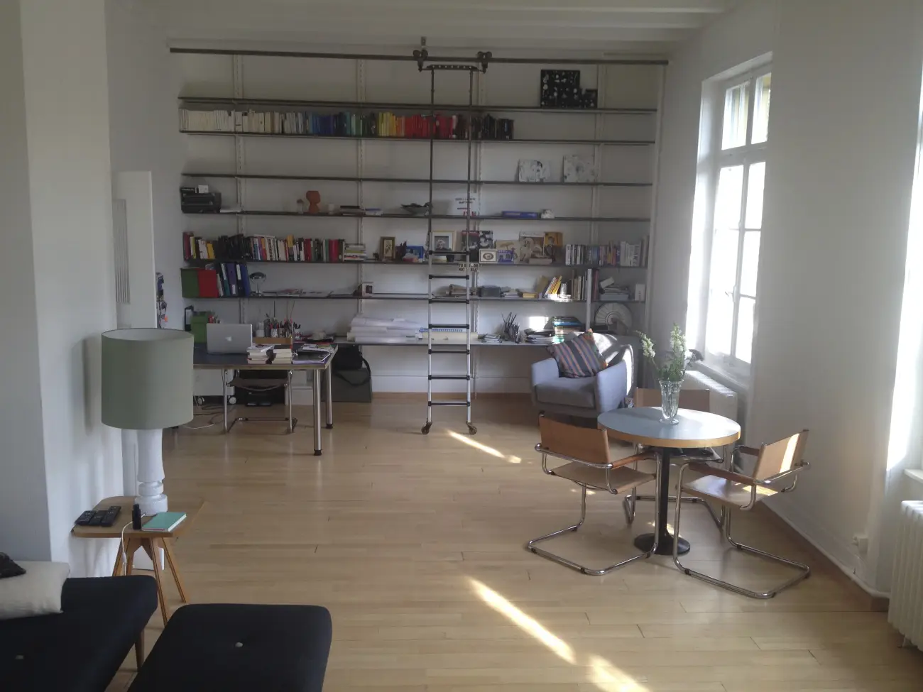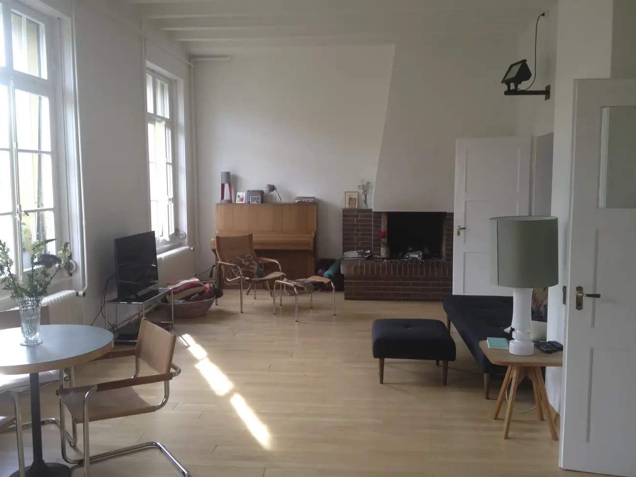 Furnished beautiful room in a big, quiet, high-ceiling industrial apartment in very central K4, with balcony, shared toilet and bathroom, washing machine in the apartment. The apartment has a large living room, shared calmly and respectfully; it is also used as a workspace. Calm, well-kept flat with two cats and a creative atmosphere — a good place to live and work independently. Public transport, shops, bars and restaurants close by; river, lake and nature also within easy reach. Short- to mid-term preferred; long-term possible for the right constellation.