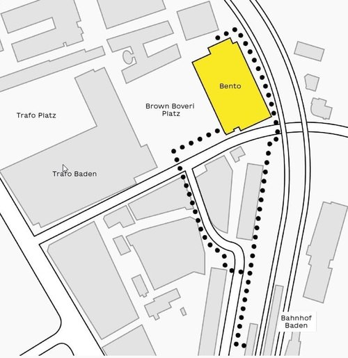 Sehr zentral liegt Bento in Baden – in einem etablierten Viertel, auf einem alten Industriegelände, umgeben von bekannten Firmensitzen.