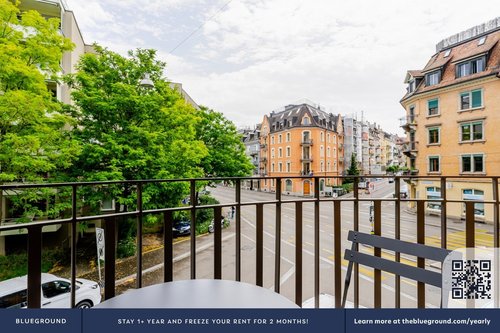 Entdecken Sie das Beste von Zurich, mit diesem Zwei-Schlafzimmer Wohnung in Sihlfeld mit Blick vom Balkon auf die Stadt. Es wird einfach sein, aufzutauchen und zu beginnen, in diesem wunderschön Blueground möblierten Wohnung mit seinem voll ausgestattete Küche, schön Wohnzimmer und unsere engagierte Unterstützung vor Ort. (ID #ZRH223)