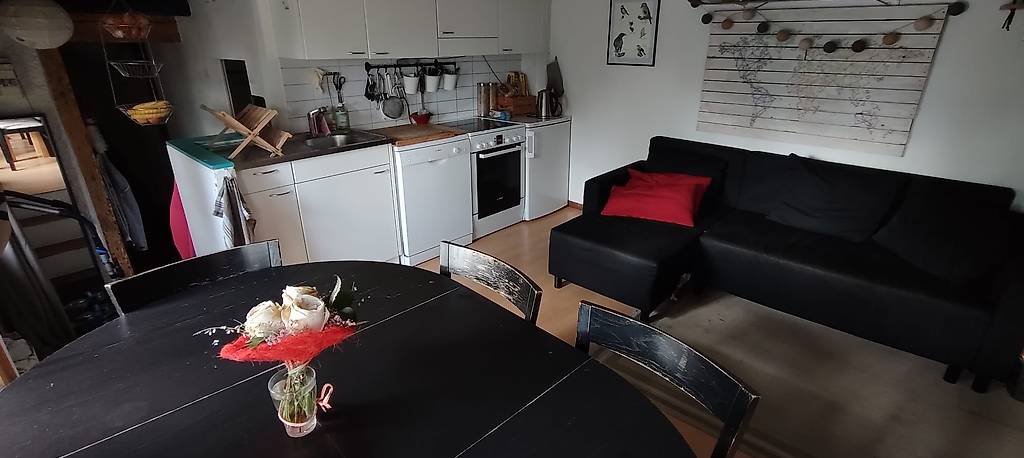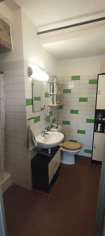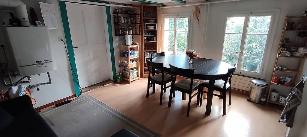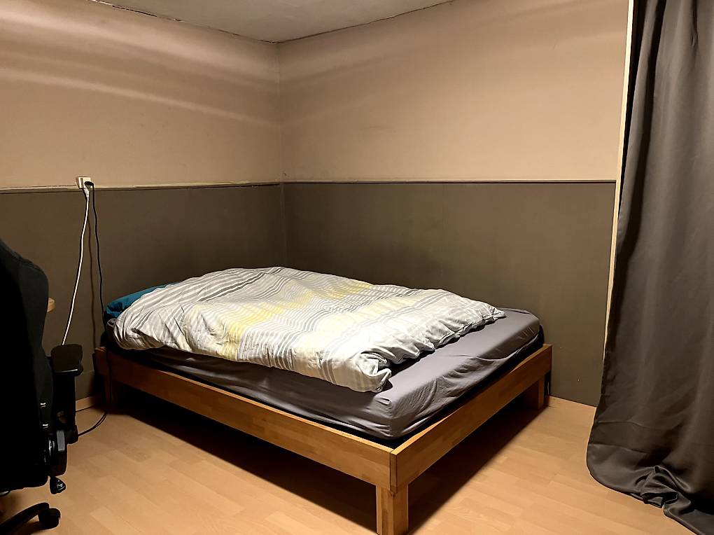 Chambre (meubles à vendre), cuisine/salle commune meublée/équipée, salle de bain avec douche & WC partagés, laverie (inclue dans le loyer), jardin avec terrasse.