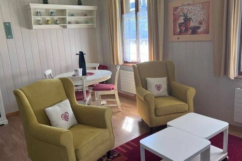 Bel appartement de 3 pièces situé dans le village, à deux pas de la place de jeux pour enfants et du départ de la télécabine Meilleret Express. Il se compose d'une chambre avec 2 lits superposés et d'une chambre avec un grand lit, d'un salon/salle à manger avec TV et Wi-Fi, ainsi que d'une cuisine entièrement équipée avec lave-vaisselle. Salle de bains avec WC, buanderie, jardin avec terrasse et places de parc extérieures.