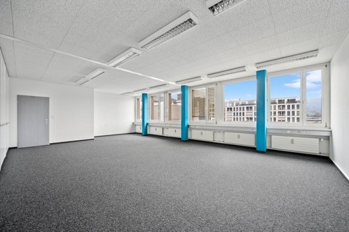 Grosszügige Bürofläche an zentraler Lage in Dietikon zu vermieten Im neu geschaffenen Stadtquartier Limmatfeld in Dietikon, unmittelbar am Ufer der Limmat, bietet das fünfstöckige Gebäude flexible Büroflächen in unterschiedlichen Grössen. 3.Obergeschoss rechts Ob Einzelbüros oder Teamarbeitsplätze! Die bereits aufgeteilte Bürofläche überzeugt mit ihrer Vielseitigkeit und passt sich mühelos Ihren Bedürfnissen an. DAS WICHTIGSTE • Radiatoren unter Fenstern • Nasszellen und Gemeinschaftsküche befinden sich auf der gleichen Etage • Viele Verpflegungsmöglichkeiten in der Umgebung
