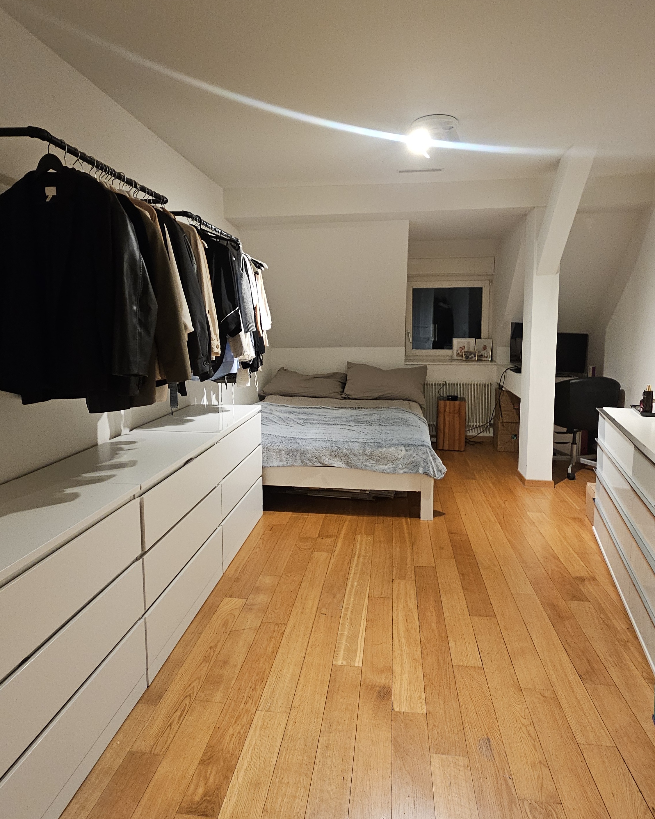 WG-Zimmer am Central in Zürich (Kreis 6) – befristete Untermiete ab April Zwischen 1. und 15. April 2026 (oder nach Vereinbarung) wird in unserer wunderschönen WG an zentralster Lage ein ca. 17 m² grosses Zimmer frei. Die Untervermietung ist für mindestens 3–4 Monate geplant, mit Möglichkeit auf Verlängerung. Die einzigartige 7.5-Zimmer-Wohnung mit über 200 m² Wohnfläche befindet sich im 4. Stock und bietet eine beeindruckende Rundumsicht über die Stadt Zürich. Hauptbahnhof, Universitätsquartier, Innen- und Altstadt sowie das Flussbad Oberer Letten sind in wenigen Minuten zu Fuss erreichbar. Das Herzstück der Wohnung ist die rund 100 m² grosse, offene und lichtdurchflutete Gemeinschaftsfläche mit voll ausgestatteter Küche. Zudem stehen drei Badezimmer mit Dusche bzw. Badewanne zur Verfügung, die jeweils von zwei Personen geteilt werden. Waschmaschine und Tumbler befinden sich ebenfalls direkt in der Wohnung. Das Zimmer wird teilmöbliert untervermietet. Auf den Bildern ist aktuell ein kleineres Zimmer abgebildet – das verfügbare Zimmer ist jedoch ca. 17 m² gross und entsprechend geräumiger.Der monatliche Mietpreis beträgt ca. CHF 1’400. Zu unsWir – Viktoria, Emilio, Benny, Karim und Aline (vermietet das Zimmer) – sind eine internationale WG mit Wurzeln in Italien, Deutschland, England und der Schweiz. Im Alltag sprechen wir hauptsächlich Englisch, aber auch Deutsch und Französisch sind vertreten. Wir sind alle zwischen Ende zwanzig und Anfang dreissig und beruflich in unterschiedlichen Bereichen tätig – von universitärer Forschung über Marketing und Investment bis hin zur Softwareentwicklung. Da wir privat wie beruflich oft unterwegs sind, gestaltet sich unser Alltag eher individuell. Umso wichtiger ist uns ein angenehmes und respektvolles Miteinander, bei dem jede:r auch sein eigenes Privatleben hat. Ein spontaner Plausch in der Küche oder auf der Couch ergibt sich immer wieder, und gelegentliche gemeinsame WG-Abendessen gehören ebenfalls dazu. Wenn wir dein Interesse geweckt haben, freuen wir uns über ein paar Zeilen zu deiner Person, damit wir einen Kennenlern- bzw. Besichtigungstermin vereinbaren können. Wir freuen uns darauf, von dir zu hören!ENGLISHShared room in a flat near Central in Zurich (District 6) – temporary sublet from AprilBetween April 1st and 15th, 2026 (or by arrangement), a room of approx. 17 m² will become available in our beautiful shared apartment in a very central location. The sublet is planned for at least 3–4 months, with the possibility of extension.The unique 7.5-room apartment offers over 200 m² of living space, is located on the 4th floor, and features an impressive panoramic view over the city of Zurich. The main train station, university district, city center, old town, and the Oberer Letten river bath are all within a few minutes’ walking distance.The heart of the apartment is the spacious, light-filled common area of around 100 m² with a fully equipped open kitchen. There are also three bathrooms (with shower or bathtub), each shared by two people. A washing machine and dryer are conveniently located within the apartment.The room is sublet partially furnished. The photos currently show a smaller room — the available room is approximately 17 m² and therefore more spacious.The monthly rent is approx. CHF 1,400.About usWe — Viktoria, Emilio, Benny, Karim, and Aline (who is subletting the room) — are an international flatshare with roots in Italy, Germany, England, and Switzerland. In everyday life, we mainly speak English, but German and French are also spoken.We are all in our late twenties to early thirties and work in various fields — from academic research to marketing, investment, and software development. As we are often busy both professionally and privately, our daily routines tend to be quite individual. That said, we value a relaxed and respectful living environment where everyone also has their own space.That said, spontaneous chats in the kitchen or on the couch happen naturally, and we also enjoy occasional shared dinners together.If this sounds interesting to you, we would love to hear a few lines about yourself so we can arrange a viewing and get to know each other.We look forward to hearing from you!