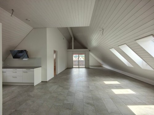 Per Mai 2026 oder nach Vereinbarung vermieten wir am Rande von Glattfelden, diese attraktive 4½-Zimmer-Dachwohnung mit folgenden Eigenschaften: –- helle Dachwohnung mit hoher Decke und viel Platz –- offene Design-Einbauküche –- alle Böden mit Hartbelägen z.B. Platten oder Parkett –- Komfortlüftung (Minergie zertifiziert) –- Liftzufahrt direkt in Wohnung –- zwei grosse gedeckte Loggias links & rechts –- Entree mit Garderobe –- separates Reduit –- Bad / WC –- Dusche / WC mit WM + TU –- inkl. Kellerabteil –- Trocknungsraum zur allgemeinen Benutzung Die Gemeinde Glattfelden verfügt über eine S-Bahn Haltestelle, den Hauptbahnhof Zürich erreichen Sie innert ca. 30 Minuten. Einkaufsmöglichkeiten, Kindergarten und Schulen sind, dank der zentralen Lage in wenigen Gehminuten erreichbar. Bei Interesse können Garagenplätze für CHF 150.- dazu gemietet werden. Haben wir Ihr Interesse geweckt? Dann freuen wir uns Sie bei einer Besichtigung persönlich von der Wohnung zu überzeugen.