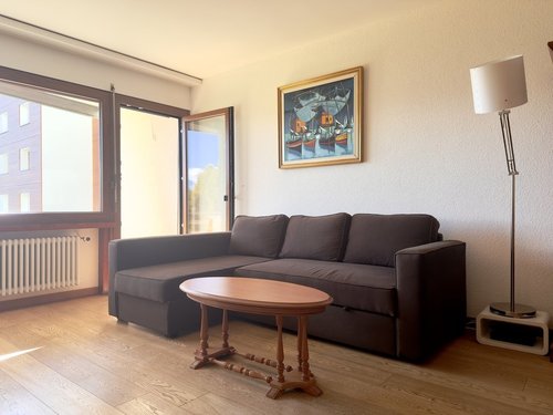 Plus d'informations ? Contactez-nous sans plus attendre ! ImmoCrans SA +41 (0)27 483 83 83 Available year-round at CHF 1'600.- per month Located in the heart of Crans-Montana , this pleasant 2.5-room apartment, fully furnished , offers an ideal living environment to enjoy the resort all year round. His situation allows quick access to all amenities : shops, restaurants, transport, as well as to the lifts for ski and mountain lovers. The apartment features a south-facing balcony , guaranteeing optimal brightness throughout the day and a beautiful view of the Valais mountains , with no overlooking. A comfortable, functional and perfectly located property, ideal for a single person or a couple wishing to settle permanently in Crans-Montana and enjoy the charm of the resort in any season. It comprises: • A living-dining room with sofa bed and access to the south-facing balcony; • A fully equipped open-plan kitchen; • A bedroom with double bed and wardrobes; • A bathroom with w.c. and washbasin; • A ski room; • A cellar.