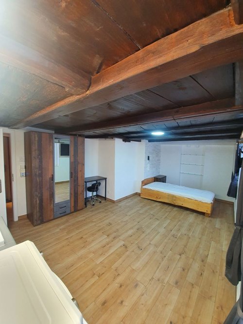 1\. Obergeschoss WG Zimmer Alles inklusive, keine Nebenkosten! Allgemein-Nutzungsbereich: • Küche mit Natursteinabdeckung, Möbelunter- Beleuchtung und LED- Streifen mit Farben, Dunstabzugshaube die übers Dach geführt wird, Lavabo mit verstellbarem Wasserarmatur, diverse Schränke • • Grosszügiges Badezimmer mit begehbarerer, grosser Dusche, Badewanne, Unterputz-WC, mit Spiegelschrank und Lavabo, Waschmaschine und Tumbler mit Wasserabführung , Lüftung wird auch übers Dach entlüftet. • • separates WC mit Spiegel und Monolith- WC, mit Lüftung die übers Dach geführt wird. • • Korridor mit Bewegungssensor für Licht • Jedes einzelne Zimmer besitzt: • eine Hauszimmertüre, mit Klopfer, Spion und Kaba-Schloss/ Schliesssystem, eigener Briefkasten • • Sämtliche Böden sind gefliest, Wände z.T. Mit Naturstein, Klosterputz oder Baumwollputz mit Glitzer, Bodenheizung, Recooling, Klimaanlage im Dachgeschoss, elektrische Dachfenster mit Sonnenlammellenstoren, Verdunklungsvorhänge • • Lavabo mit Spiegelschrank, Kleiderschrank, Safe, Bürotisch, Wasserkocher, Grillbackofen, Kühlschrank, elektrisch öffnender Abfalleimer, Bett mit Matratze und Matratzenschoner • • diverse zusätzliche Steck- oder USB-Dosen, 43'' Fernseher, separater Internetanschluss mit Wifi • • für die Beleuchtung ist gesorgt mit versch. Beleuchtungsmitteln und LED- Streifen mit verschiedenen Farben. • • Tiefgaragenparkplatz nicht inbegriffen • • Bei Vollstromfahrzeugen müsste zusätzlich eine Kopie der Fahrzeughaftpflicht beigelegt werden. • Wir freuen uns, Sie kennen zu lernen :o)