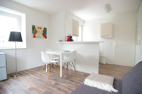 An zentraler Lage in Winterthur vermieten wir ein hochwertig möbliertes 1.5-Zimmer-Apartment. Das Apartment wurde kürzlich komplett renoviert und modernisiert. Grosszügige Fenster garantieren einen lichtdurchfluteten Raum mit angenehmer Wohnatmosphäre. Die Wohnung verfügt zudem über einen Balkon, grosse Dusche mit Glastrennwand, moderne Küche und einem praktischen Grundriss. –Schlafzimmer/Wohnzimmer mit Bett –Moderne und hochwertige Möblierung –Badezimmmer mit Toilette und Dusche (Glastrennwand) –Vollausgestattete Küche mit Kühlschrank, Gefrierfach, Keramikherd und Frühstückstisch –HD 42“ Flachbild Kabel-TV –Nespresso Kaffeemaschine –Gästewaschküche im Gebäude