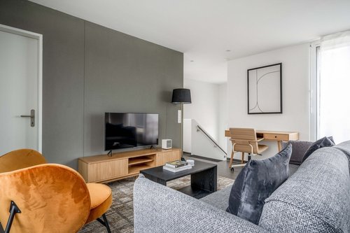 Wie bei jedem Blueground Wohnung finden Sie einen durchdacht gestalteten Raum mit schönen Möbeln. und eine voll ausgestattete Küche in diesem Ein-Schlafzimmern Immobilie. Und dank unserer hochwertigen Matratzen können Sie sich entspannen, weil Sie sich immer wie zu Hause fühlen werden. Wenn Sie Lust auf etwas Spaß haben, können Sie die Zurich -Atmosphäre genießen oder sich die Unterhaltung mit dem kabellosen Premium-Lautsprecher oder dem Smart-TV direkt nach Hause holen.